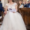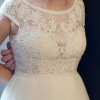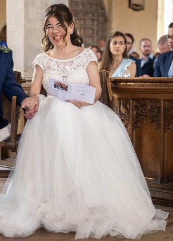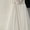 This Rosa Clara dress is the epitome of elegance and romance, and it was everything I dreamed of for my special day. The sheer neckline beautifully frames the face and adds a hint of sophistication, while the capped sleeves lend a delicate touch to the overall look. The flowing A-line silhouette is incredibly flattering, making me feel graceful as my father walked down the aisle.