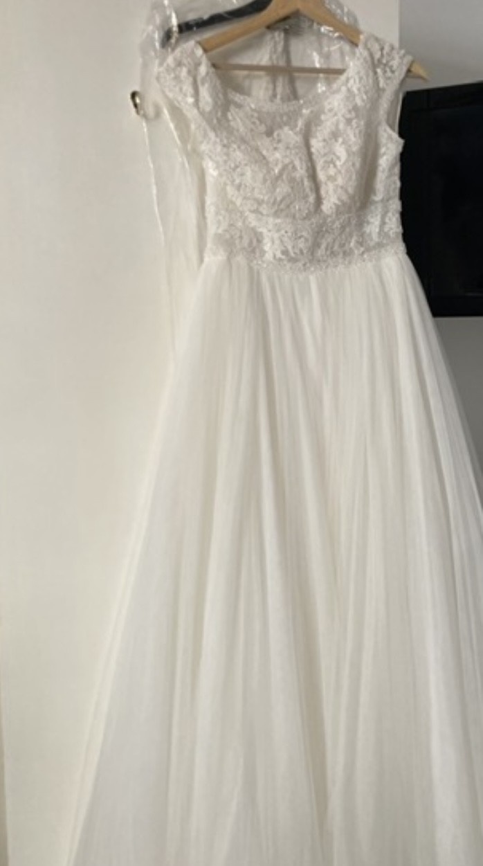 This floor-length gown, in classic white, is suitable for any wedding style, from an intimate garden ceremony to an extravagant ballroom reception. As I prepare to pass this dress on to another bride, I hope it brings just as much joy and magic to her special day as it did to mine. It's more than just a dress; it's a piece of unforgettable memories.