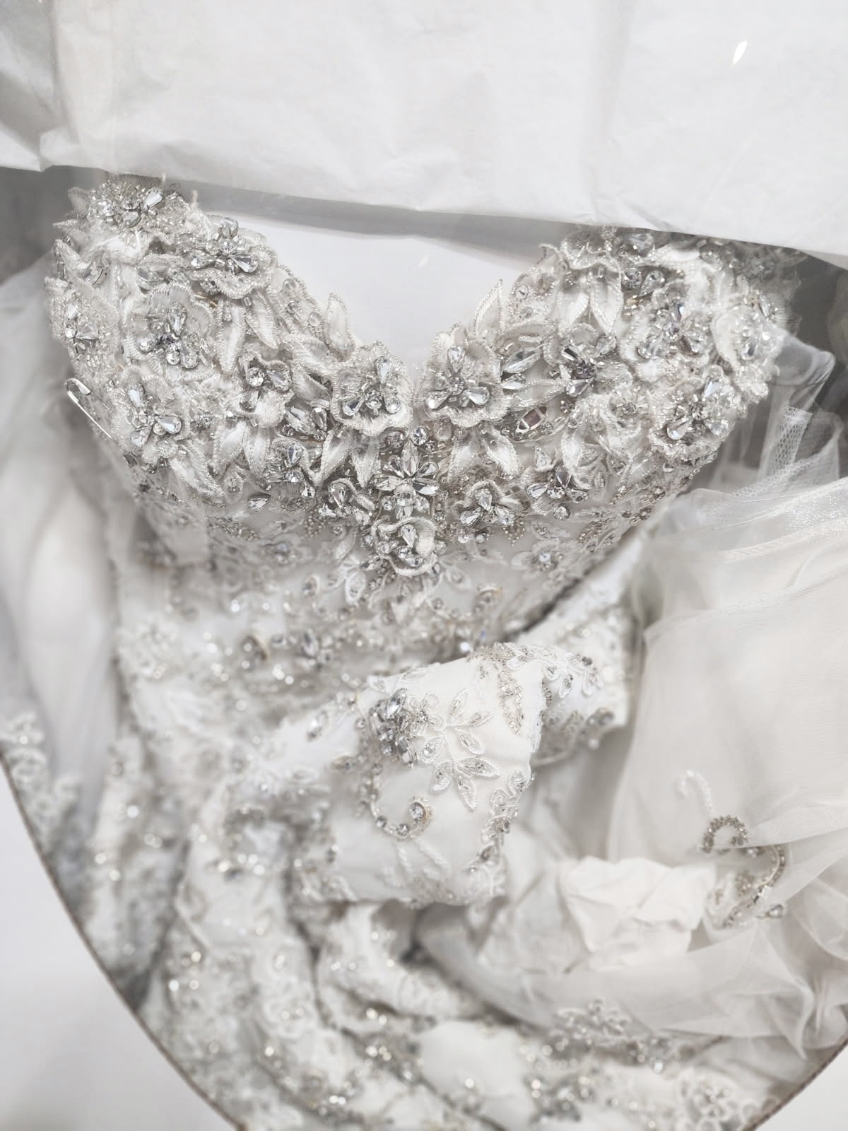 • Professionally cleaned and preserved — ready for its next bride