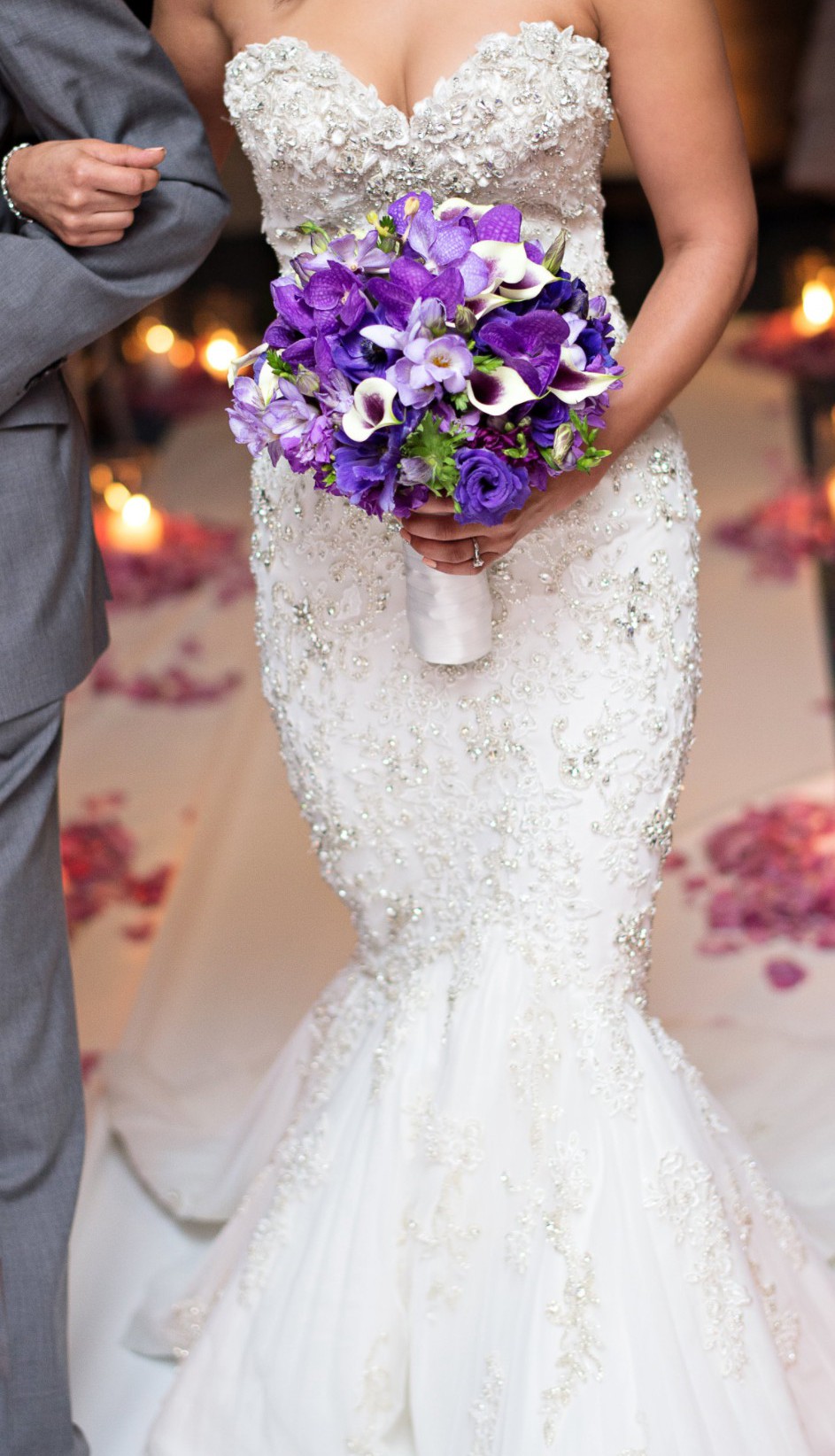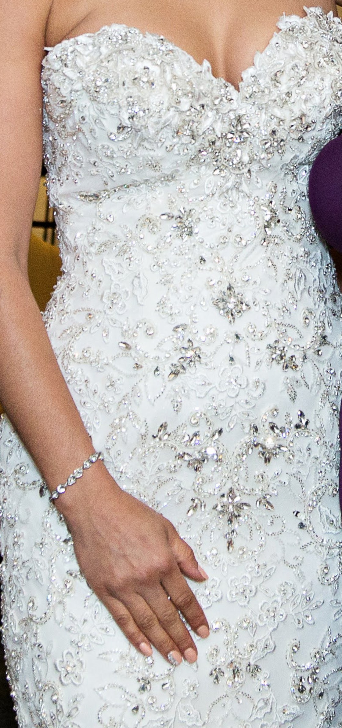 • Beautiful strapless sweetheart neckline with intricate beadwork and crystals
