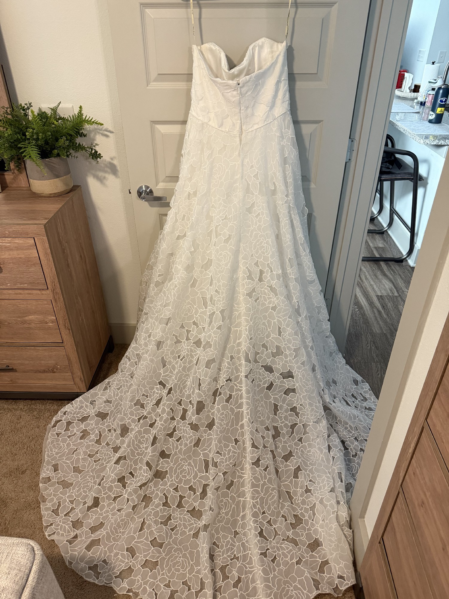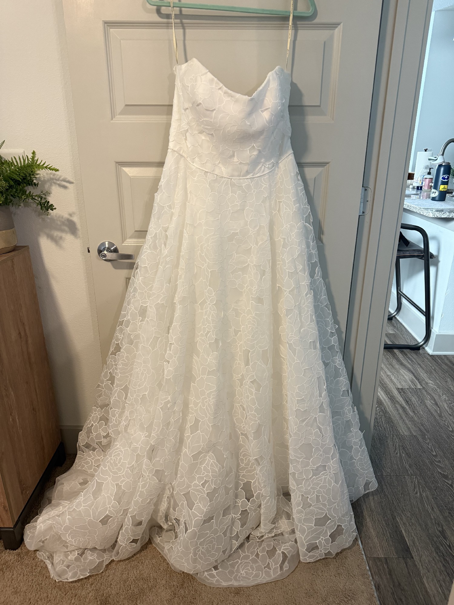 This stunning Priscilla dress by Jenny Yoo is the epitome of elegance and grace. I fell in love the moment I slipped it on, and it truly made me feel like a princess on my special day. The A-Line silhouette flatters every figure, cascading beautifully to the floor, while the strapless curved neckline accentuates the shoulder and collarbone, beautifully framing the face.