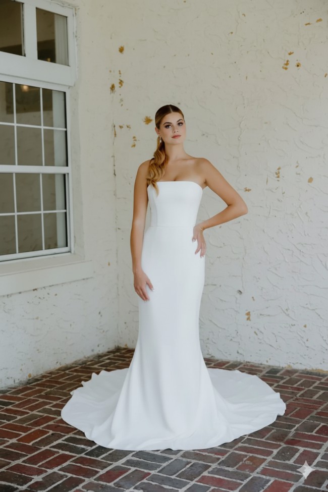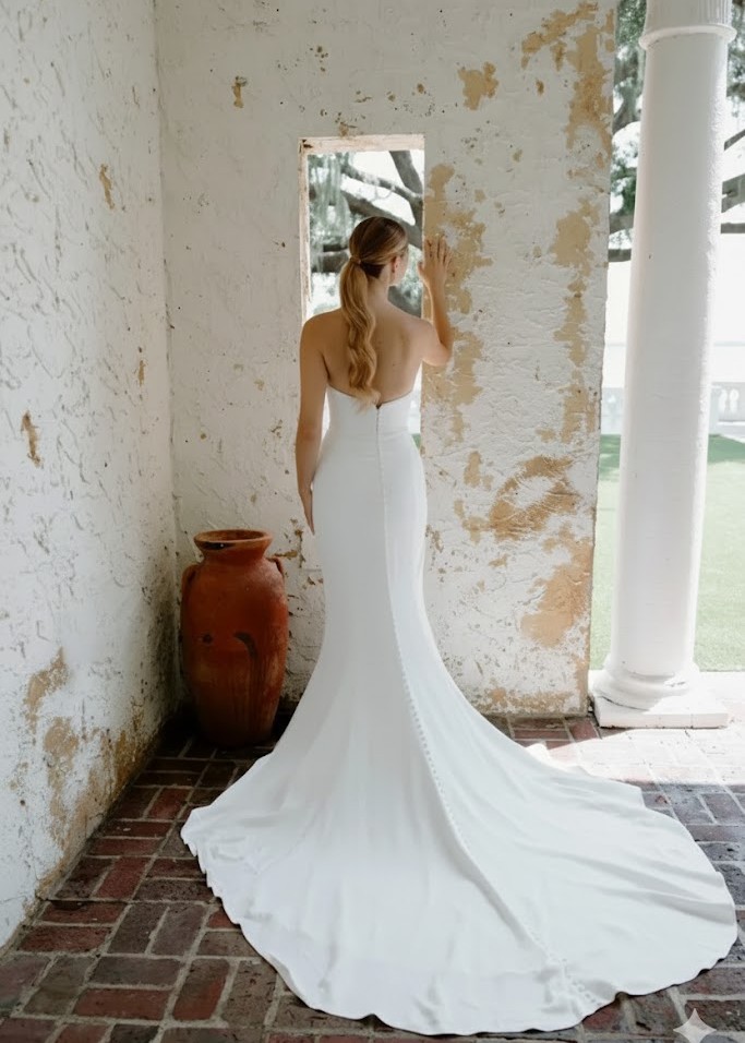 Beautiful four ply silk crepe sheath gown from Angel Rivera Bridal Atelier.