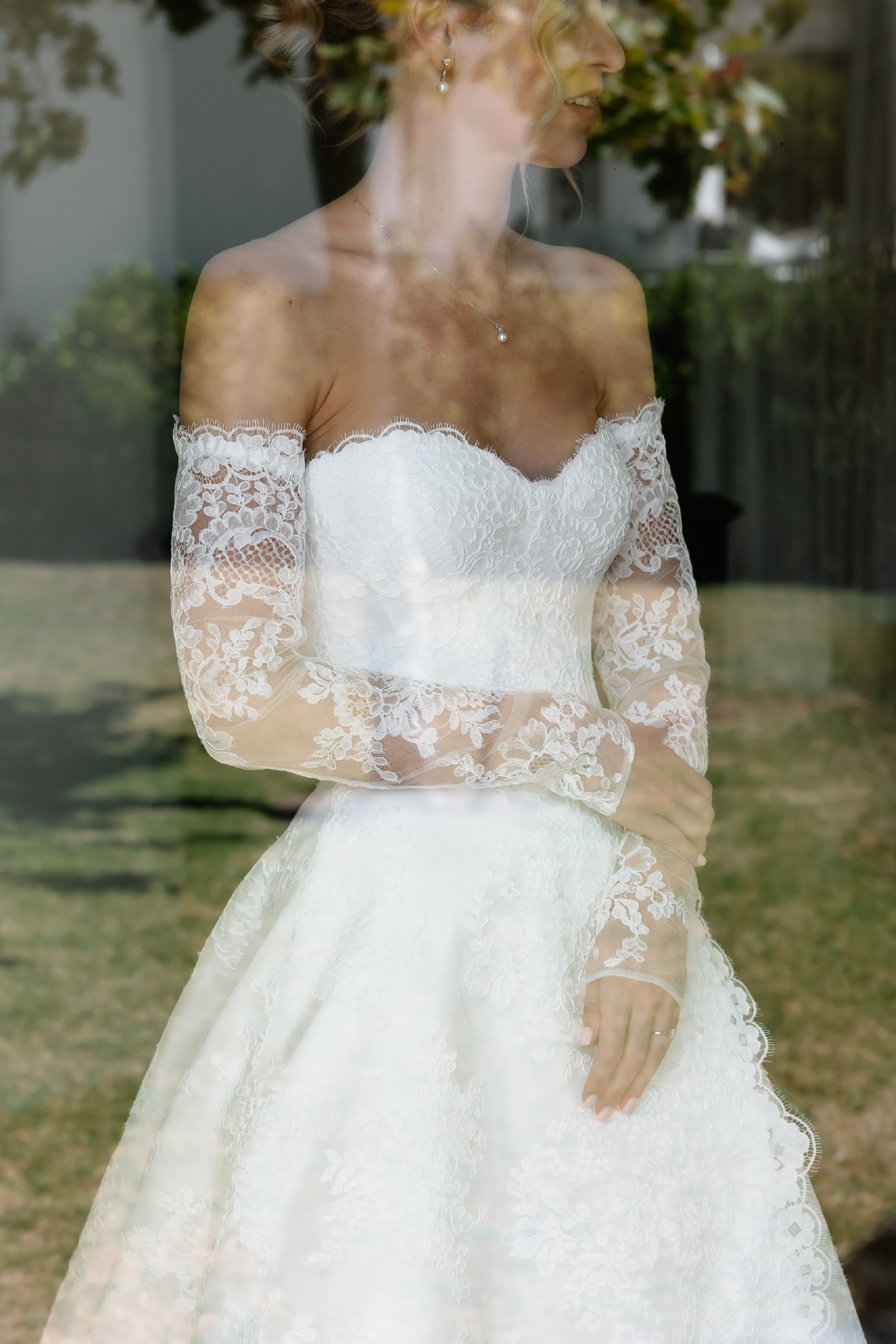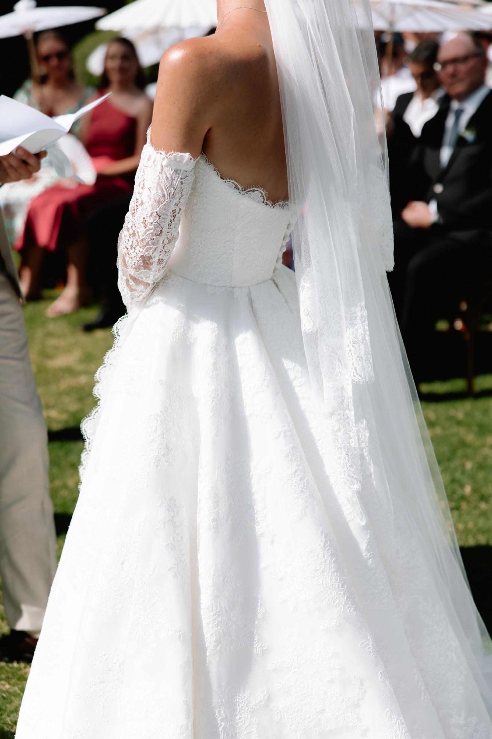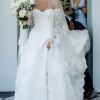 One of my favorite features is the versatility offered by the detachable sleeves, allowing you to customize your look throughout the day. They transform the gown from a timeless strapless design to a stylish, chic look with ease. The high slit gives it a modern edge, ensuring all eyes are on you as you glide down the aisle.