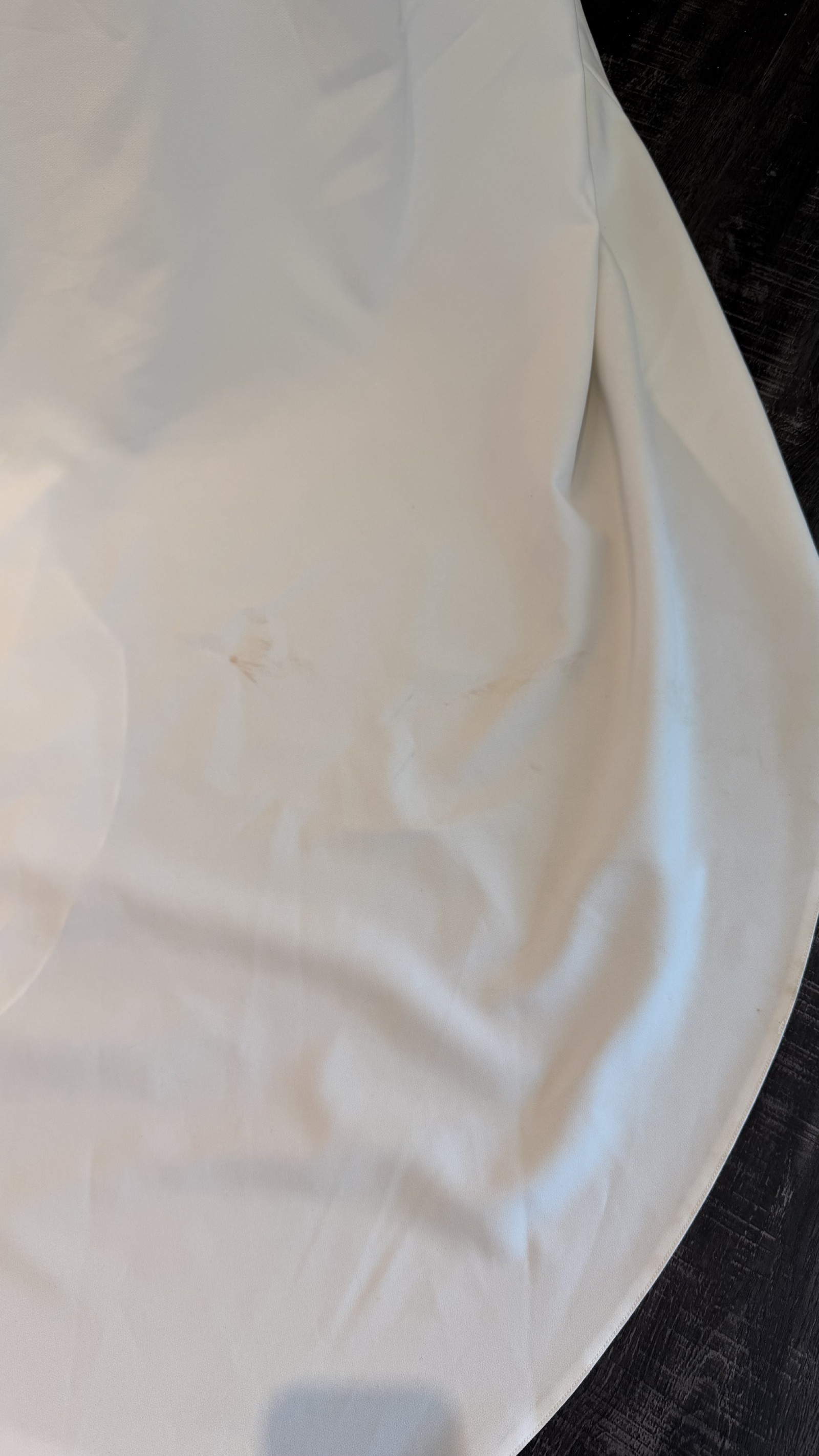- Scuffs back bodice left side of zipper