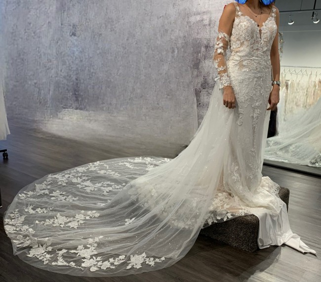 Wedding dress bought from Atelier NüStyle, made by an Israeli designer. This gorgeous wedding dress comes with custom made sleeves and a detachable skirt. It is made of lace, with intricate floral designs and some light beading.