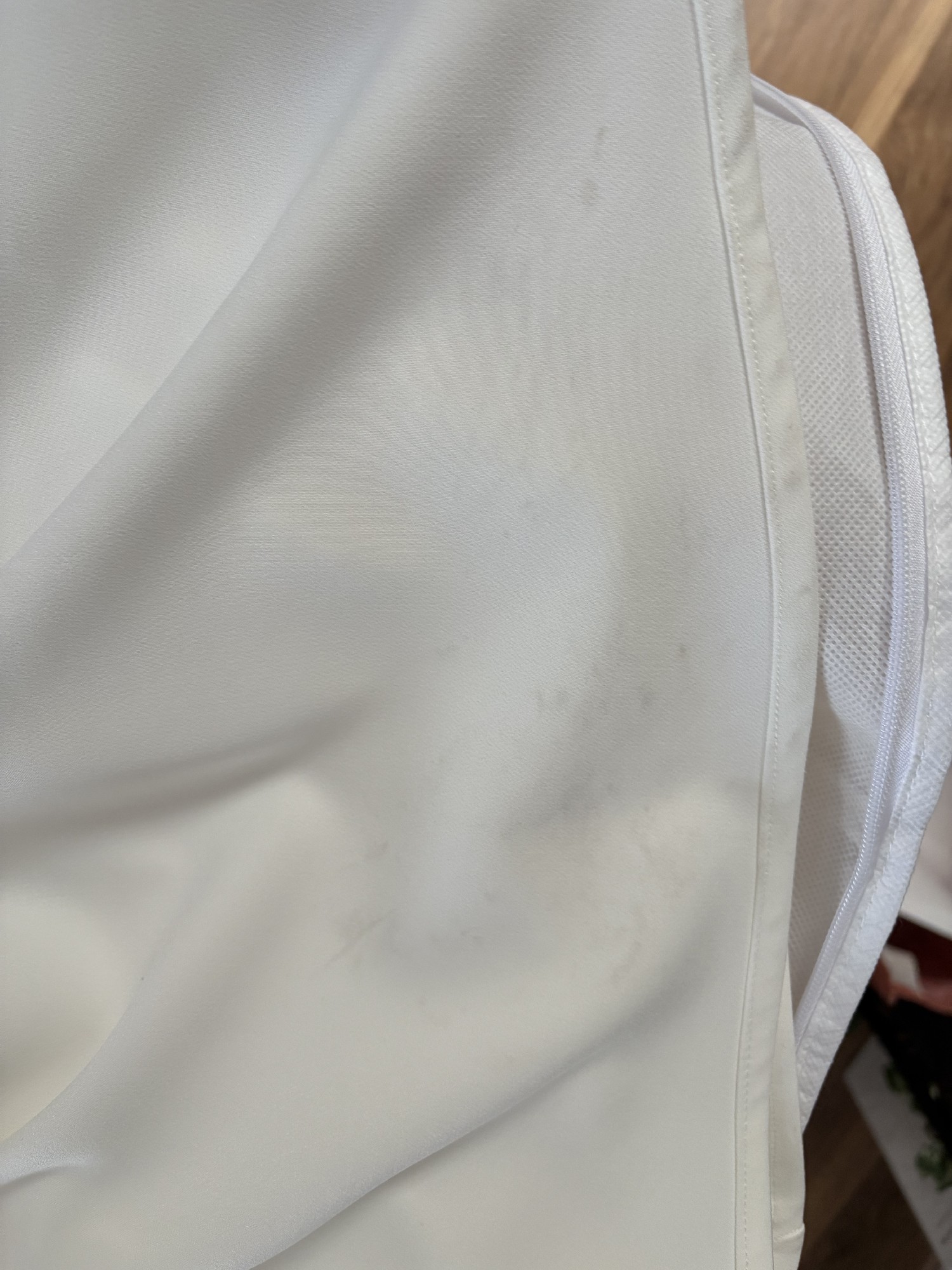 - A couple of light grey marks on the underside of the train which are not visible on the outside of the dress (pictured)