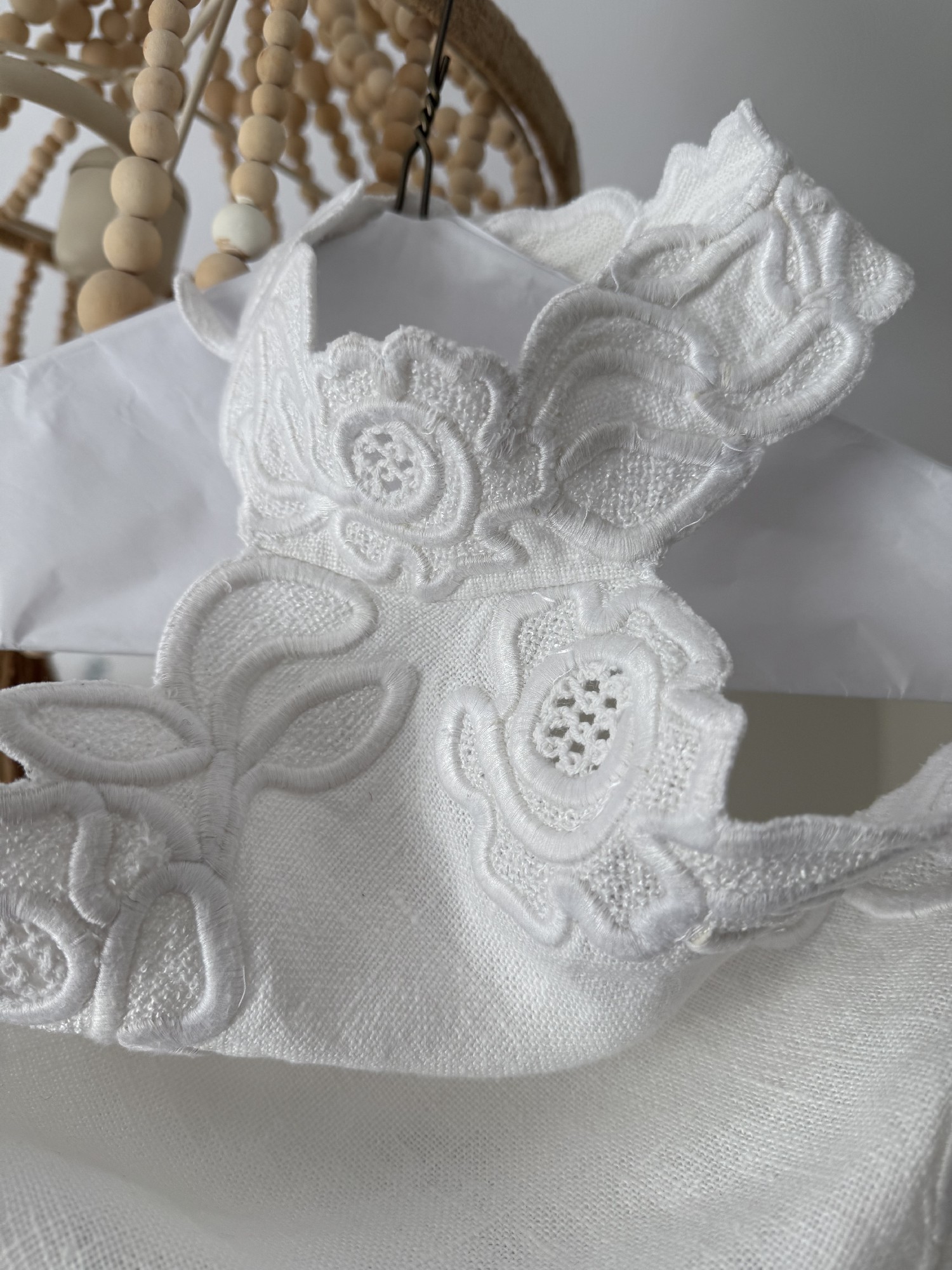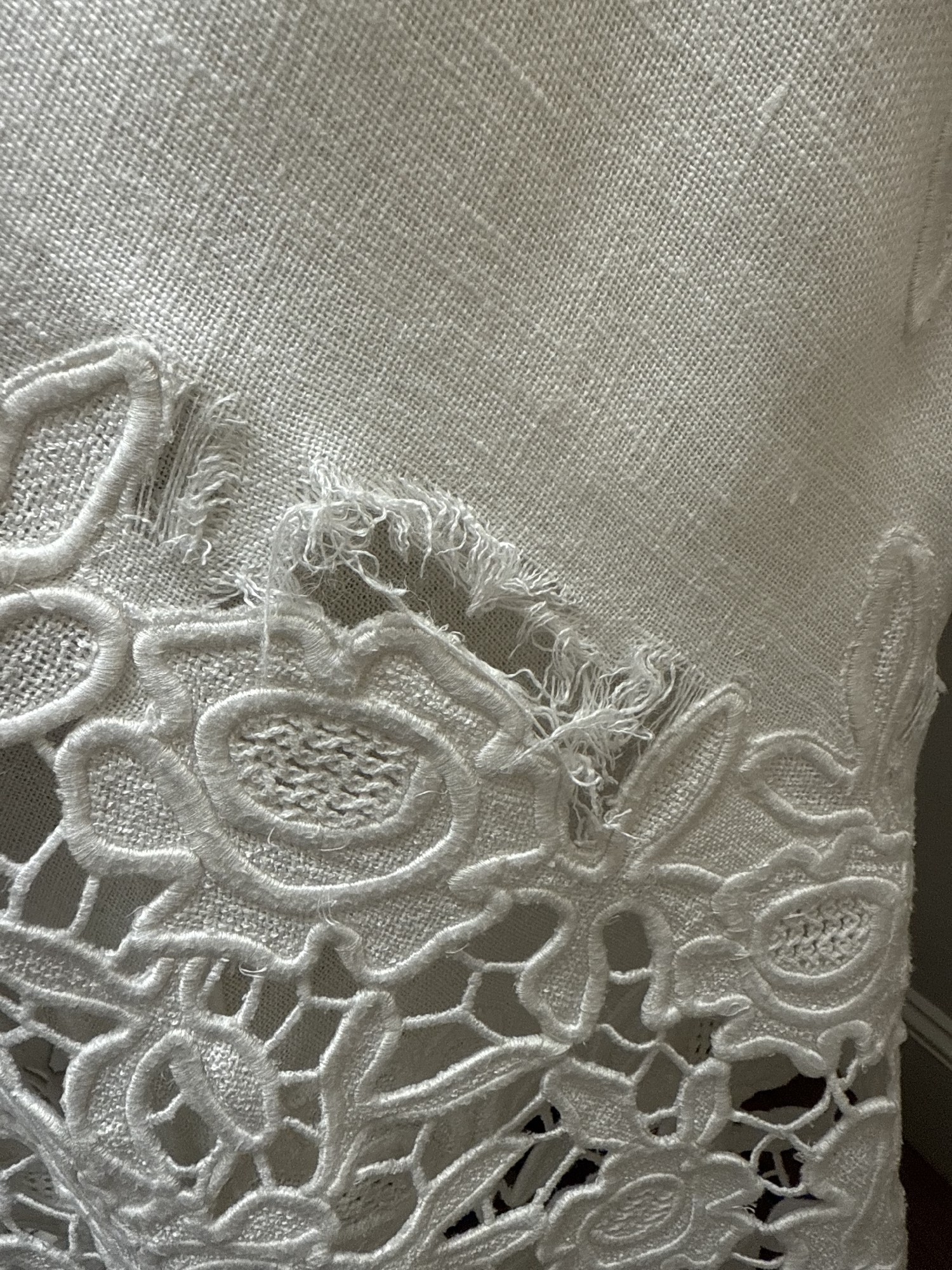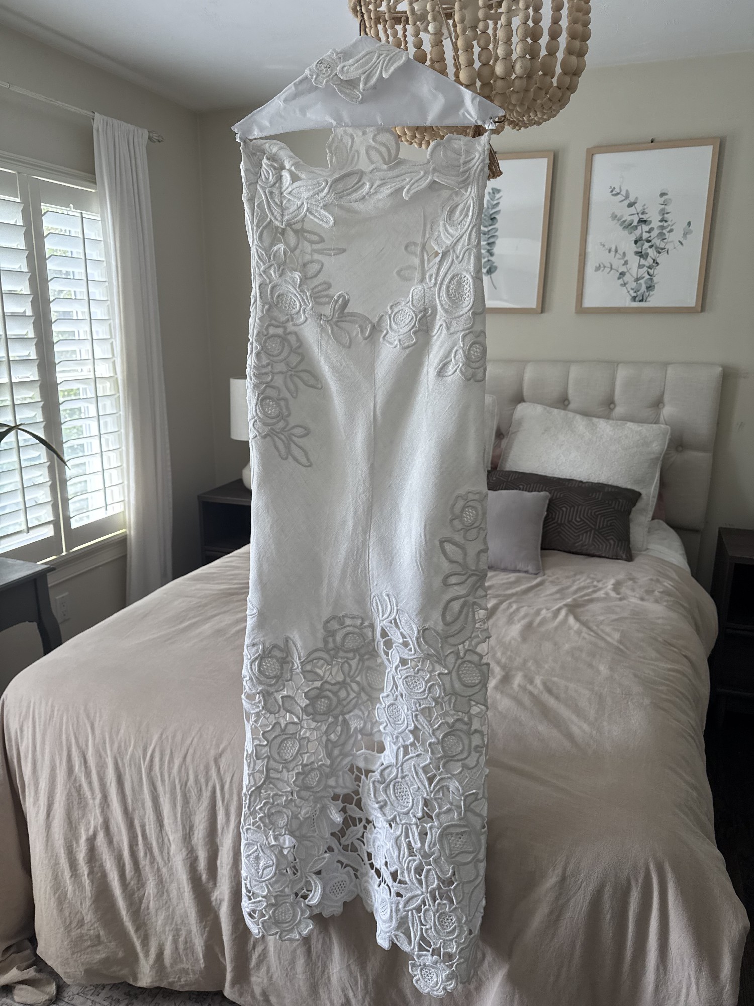 The elegant Cult Gaia Tamara Gown in off-white linen. I wore this once for my wedding welcome party, and it’s been professionally dry cleaned and carefully stored since.