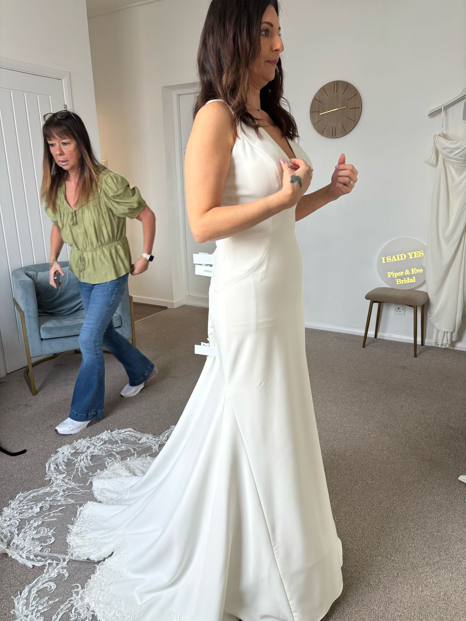 *Off the peg, never worn*I brough this stunning dress in 2025 in a 14 to have altered to an 8 - 10. The alterations can been done, I had this confirmed with a seamstress. Current size is a UK14.