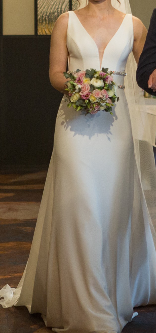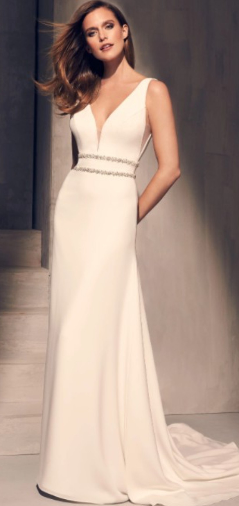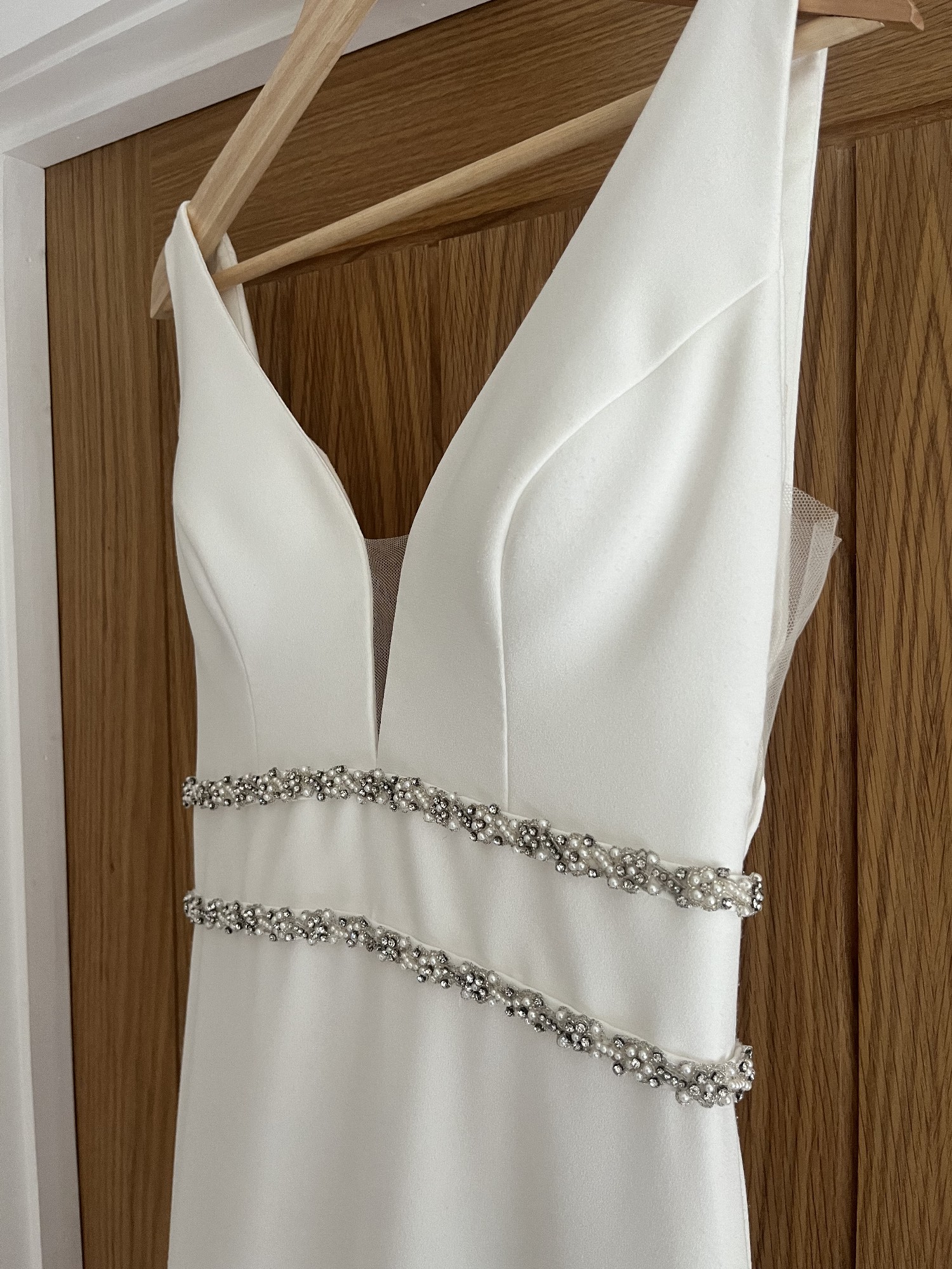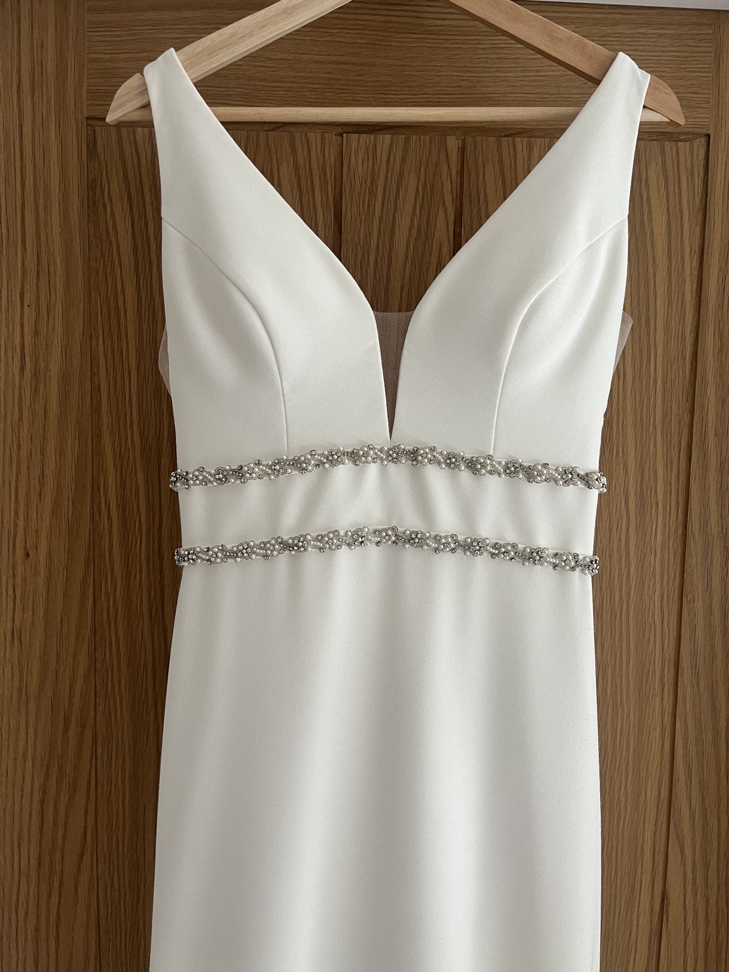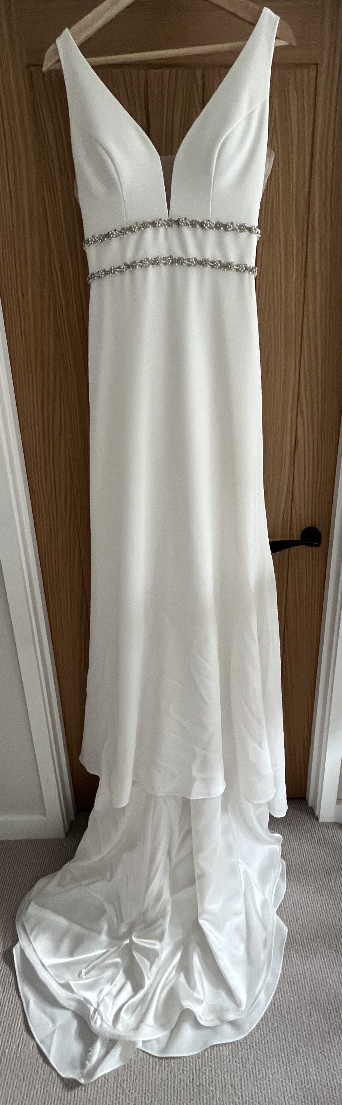 Beautiful Mikaella 2214 wedding dress in crepe, UK size 10.