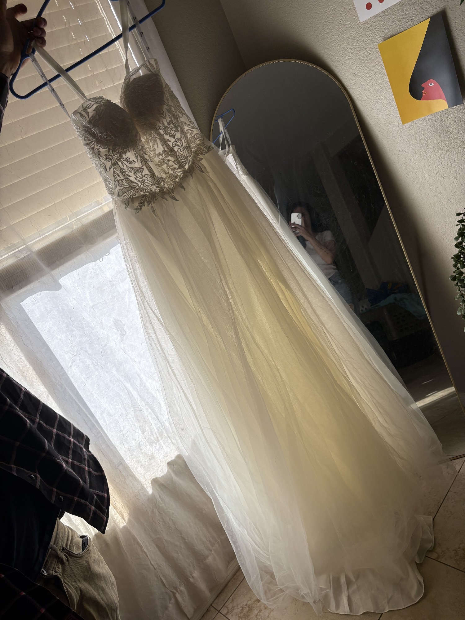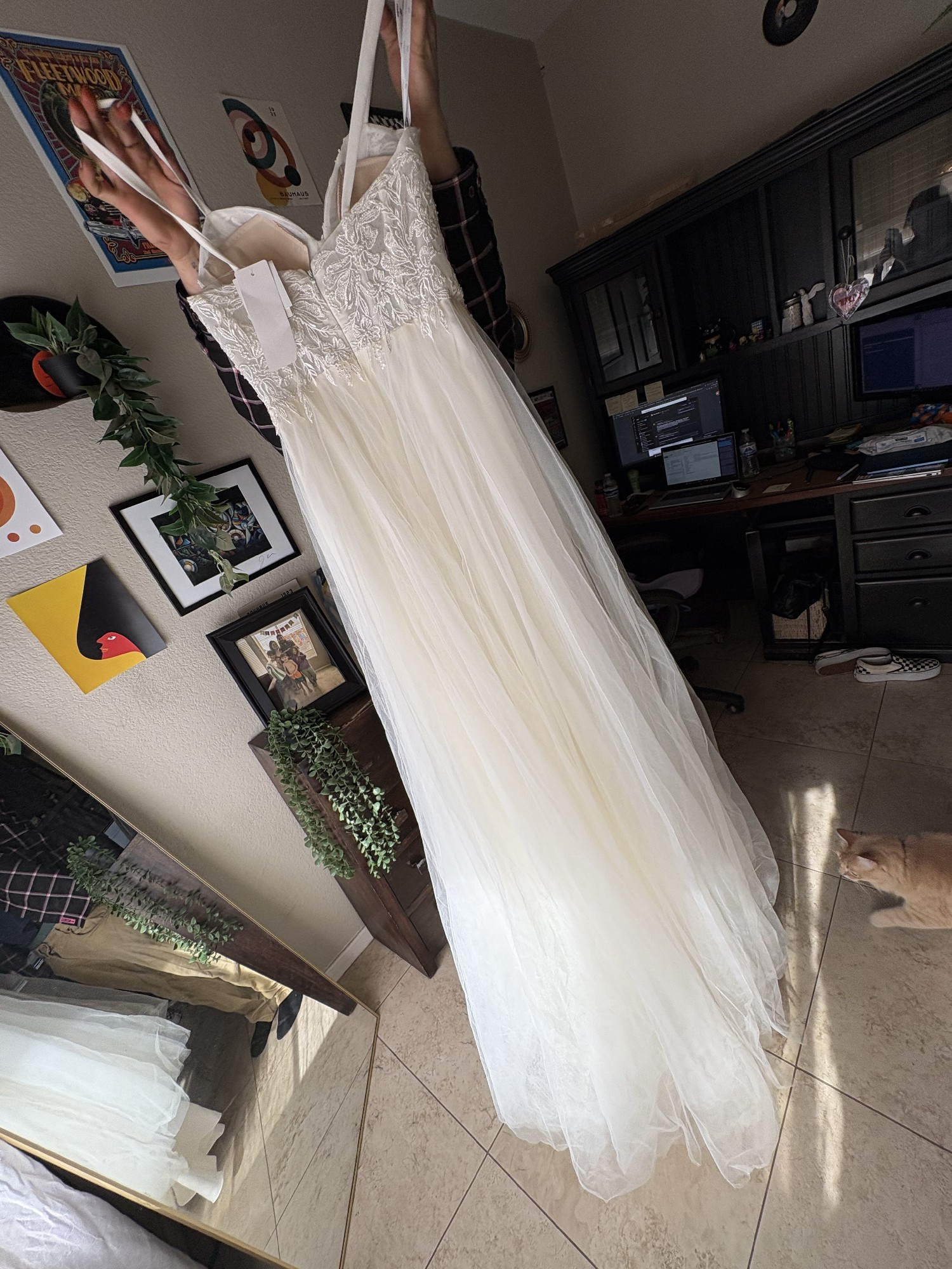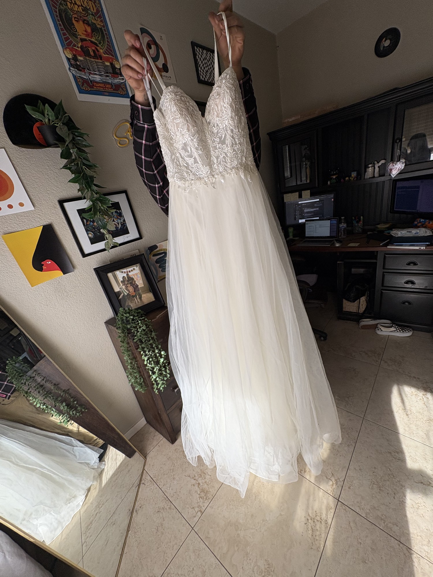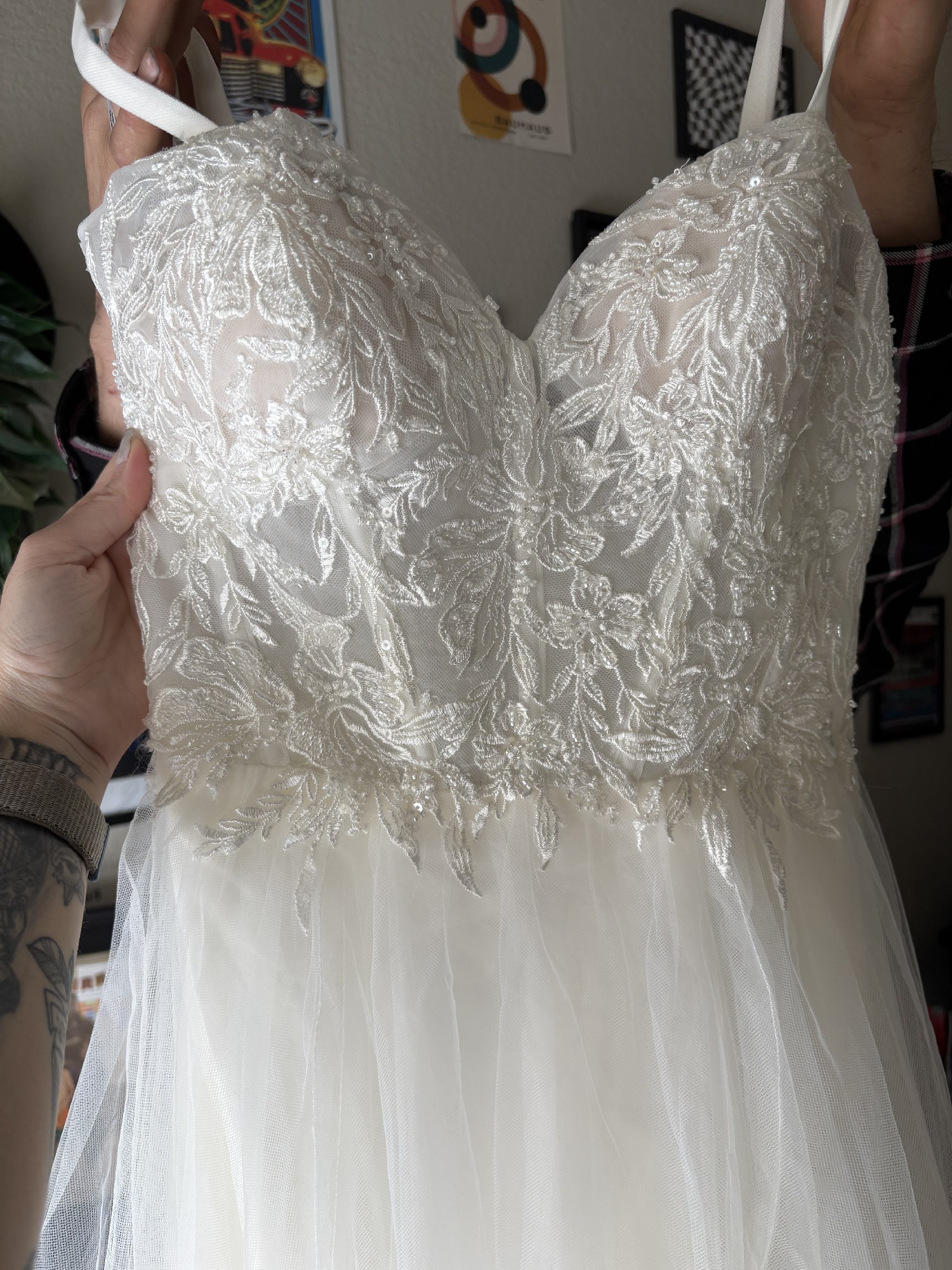 Gorgeous size 4 UNALTERED wedding gown. Never worn but to try on. Tags still attached went a different route & just wanting to find her a new homeðŸ¤