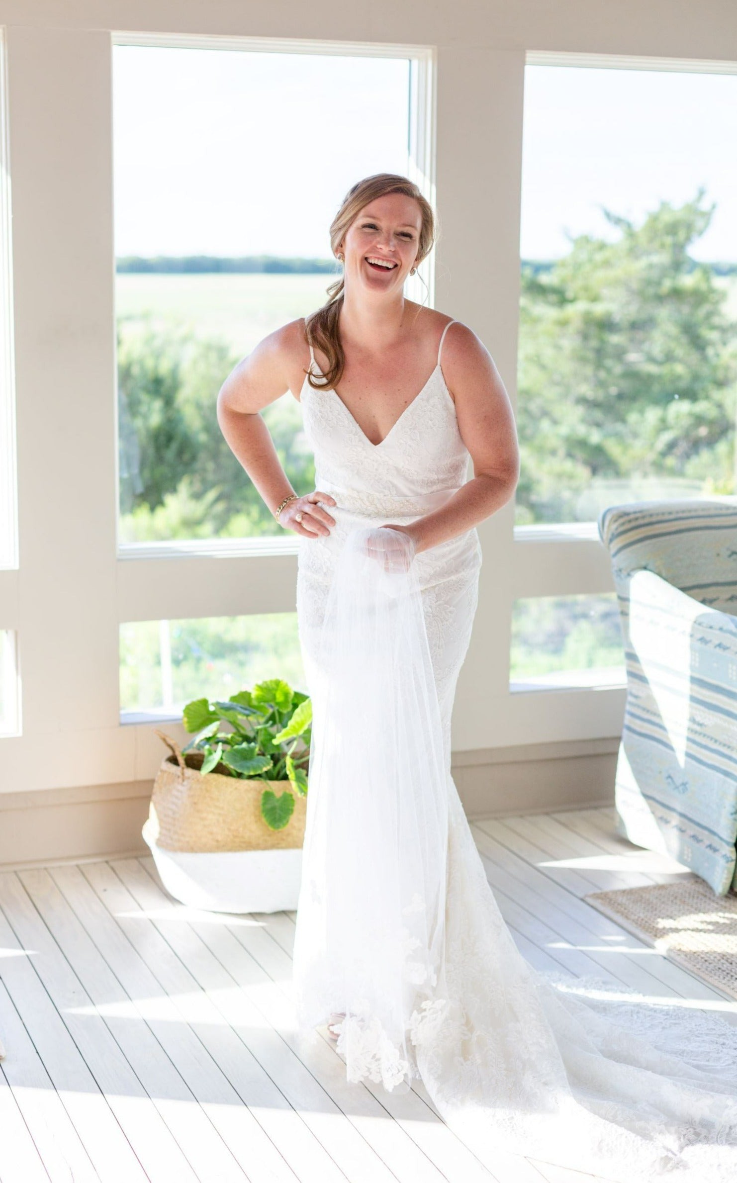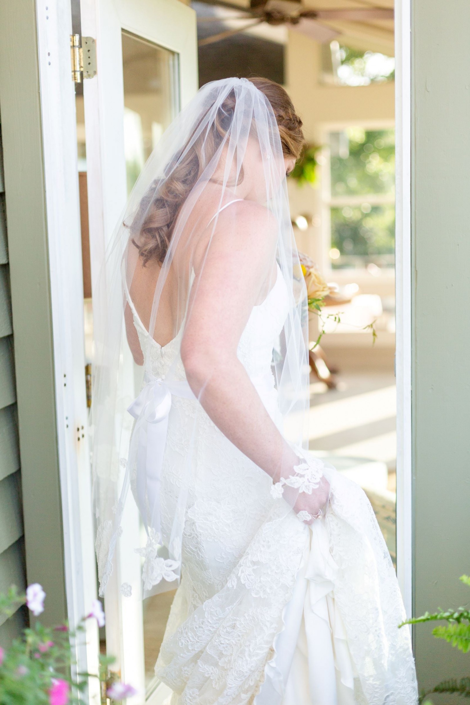 Alterations: The dress had to be let out a little bit and I had a French bustle sewn into the train that makes it easy to move around after the ceremony and looks beautiful when tied up.
