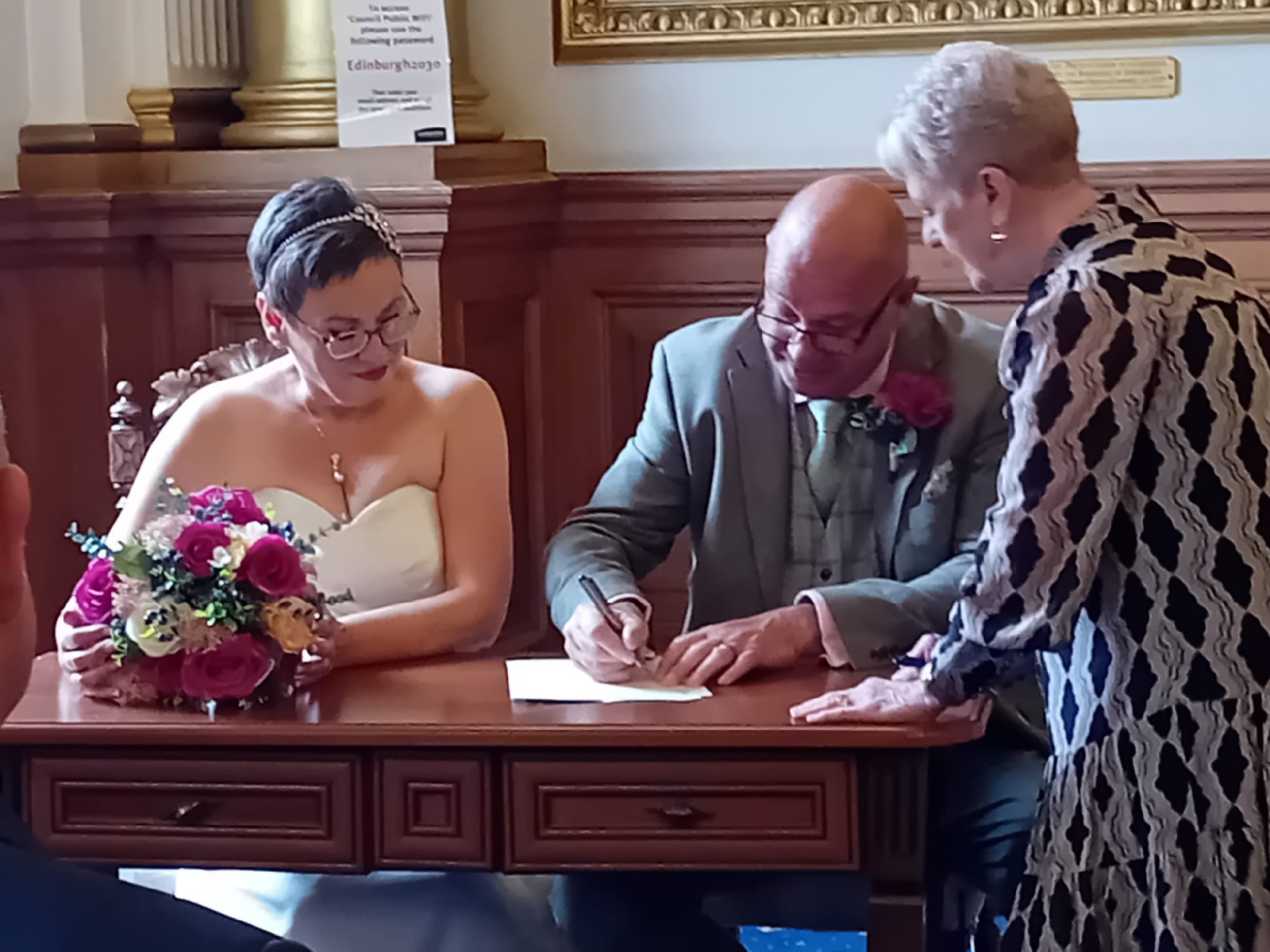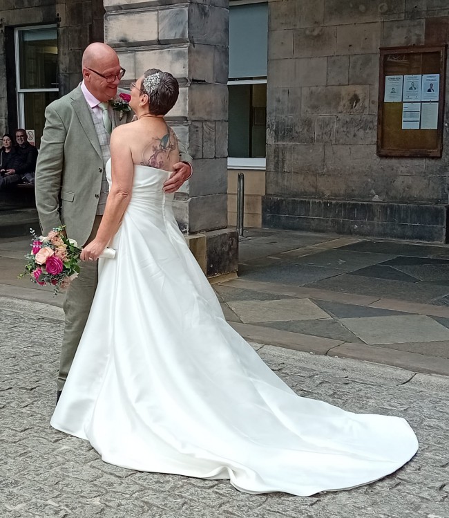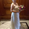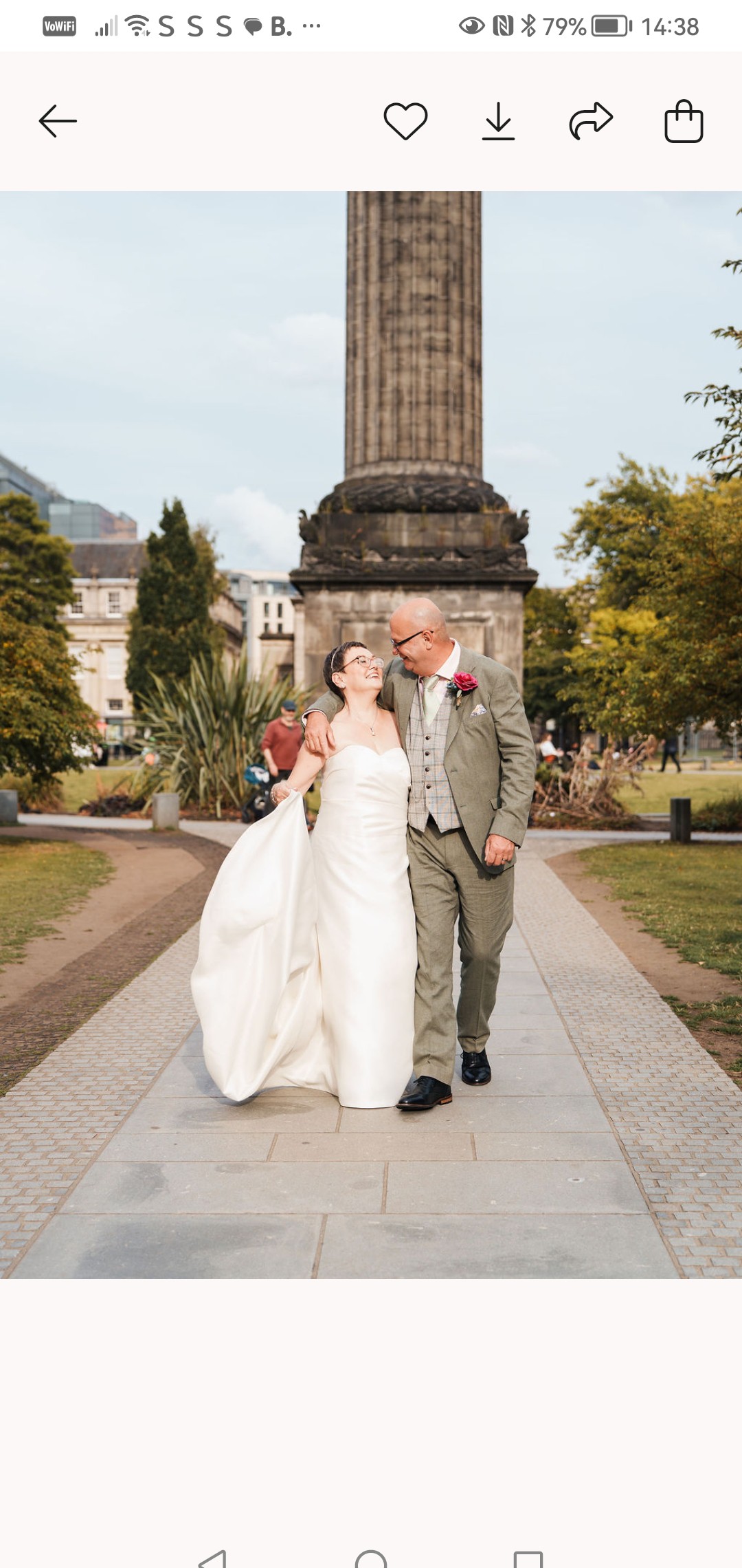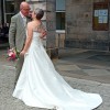 Stunning and super flattering mikado silk dress from top Glasgow designer Joyce Young (she has designed outfits for Muriel Gray, Joanna Lumley and Maureen Lipman). It has a sweetheart neck line, beautifully constructed pleated bodice (you won't need a bra). It was taken in to fit me and those are the measurements I was when we got married.