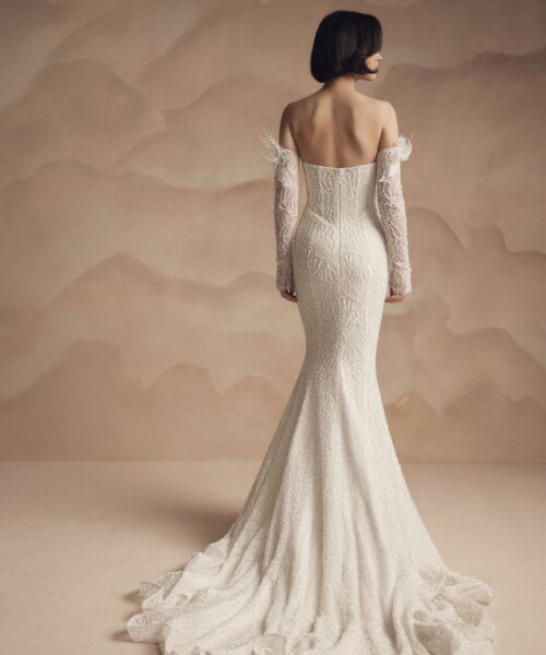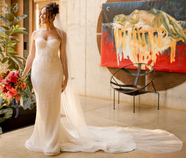 Perfect for the bride who wants to feel elegant, modern, and unforgettable, this dress delivers a show-stopping yet refined look that turns heads from ceremony to dance floor. You’ll feel radiant, sculpted, and fully yourself in this piece of wearable art.