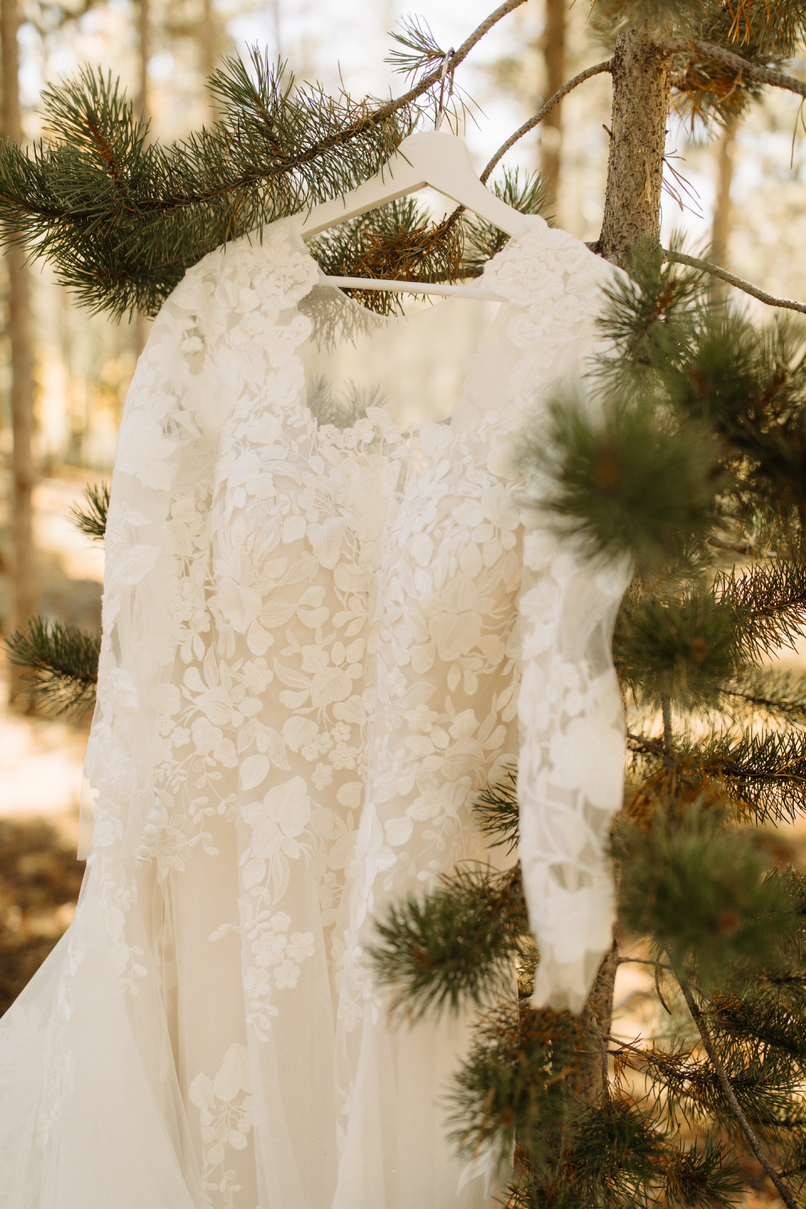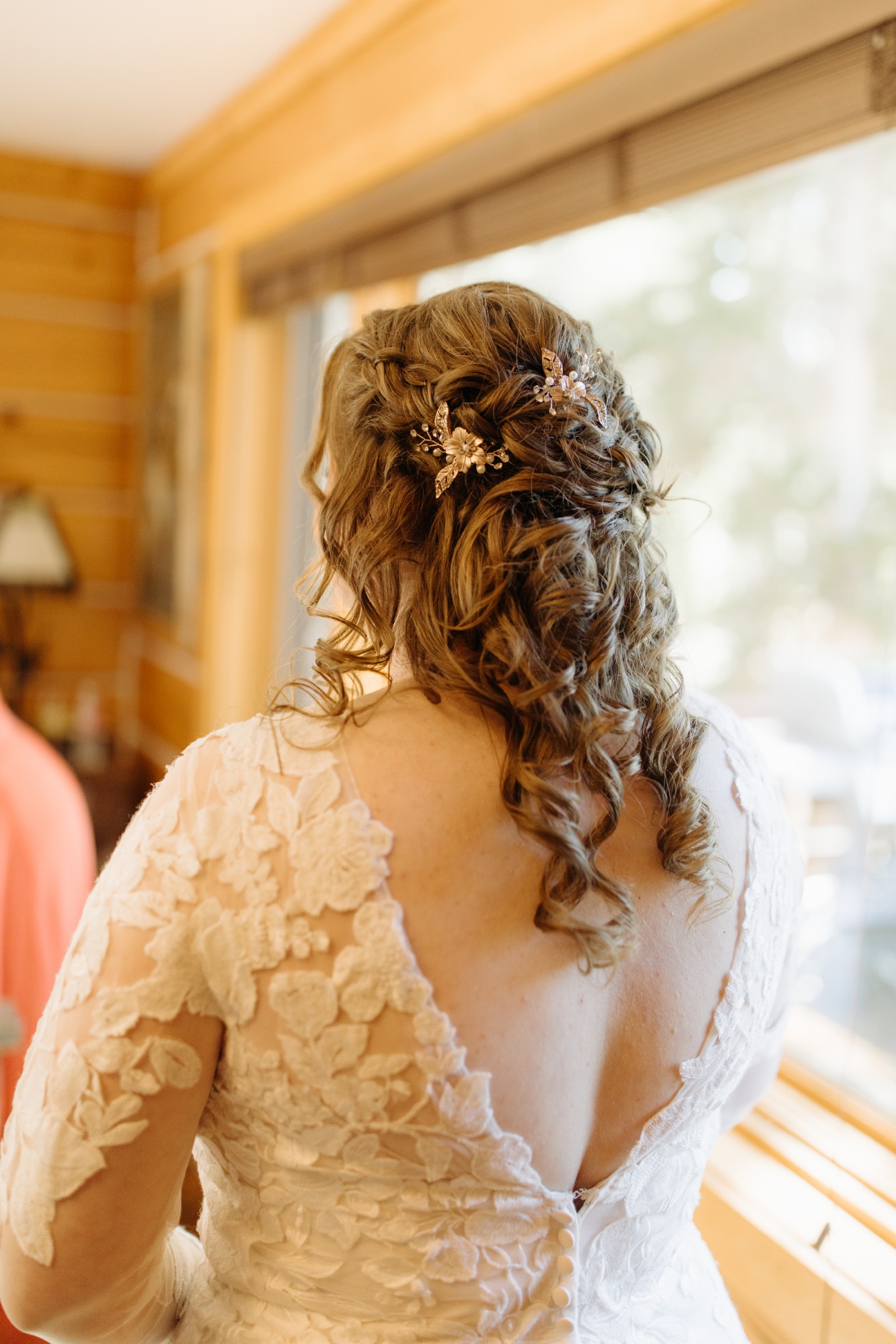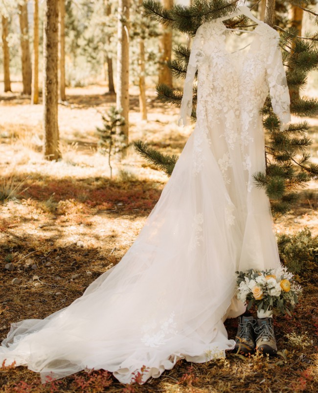 I had an outdoor mountaintop wedding ceremony, so I wore hiking boots. The alterations on the length would fit perfectly for someone who is shorter than 5.6” or planning to wear flats.