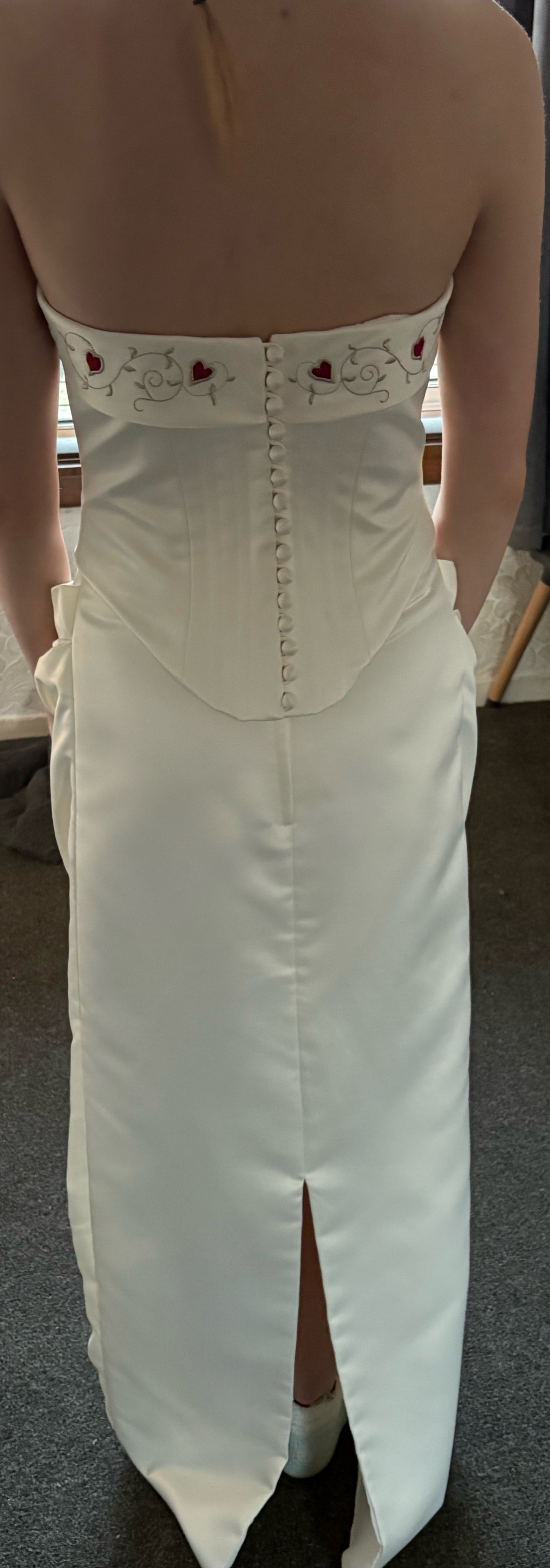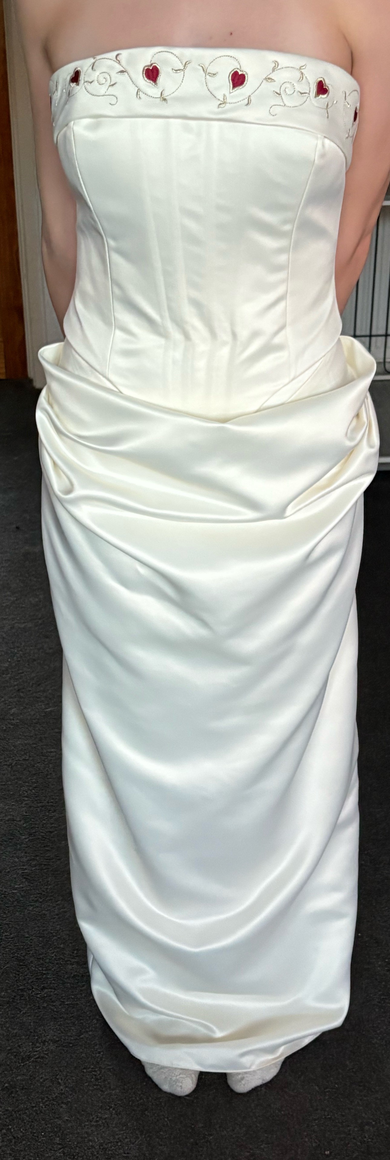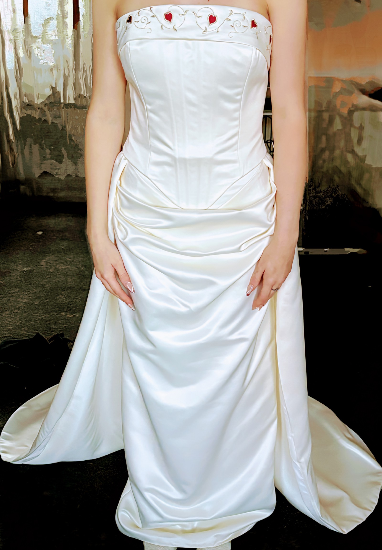 This stunning Catherine Jane separates wedding dress was the perfect choice for my special day, and I want it to bring joy to another bride. With its straight neckline and strapless design, it highlights every curve while providing an elegant and timeless look. The low back adds a touch of allure, making it both sophisticated and beautifully romantic.