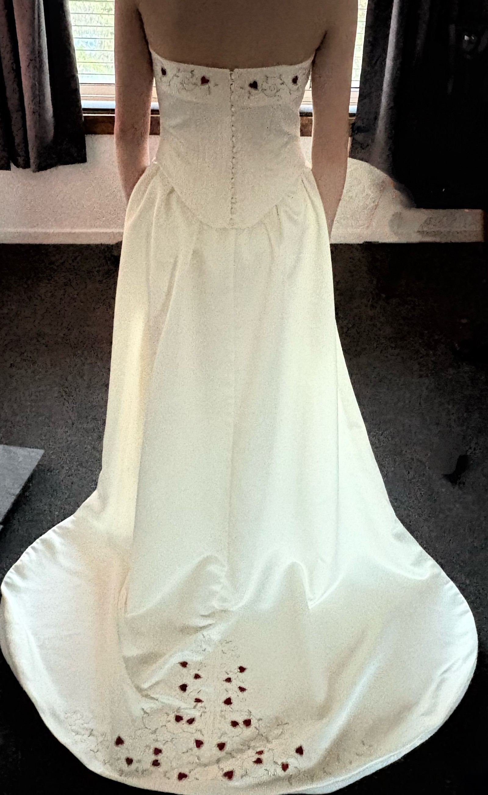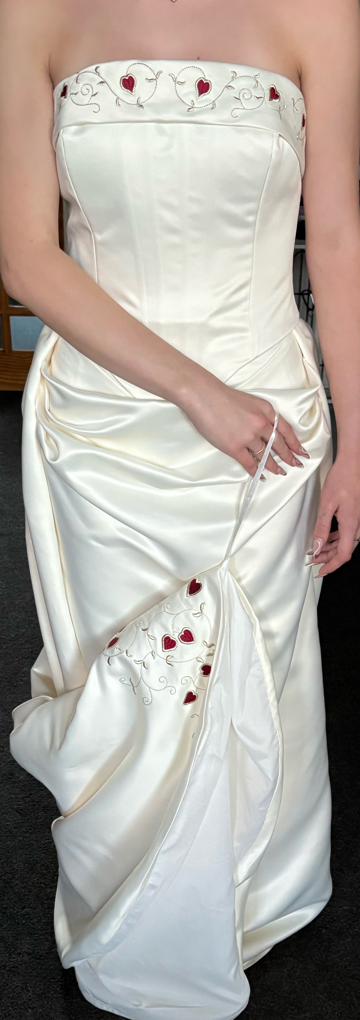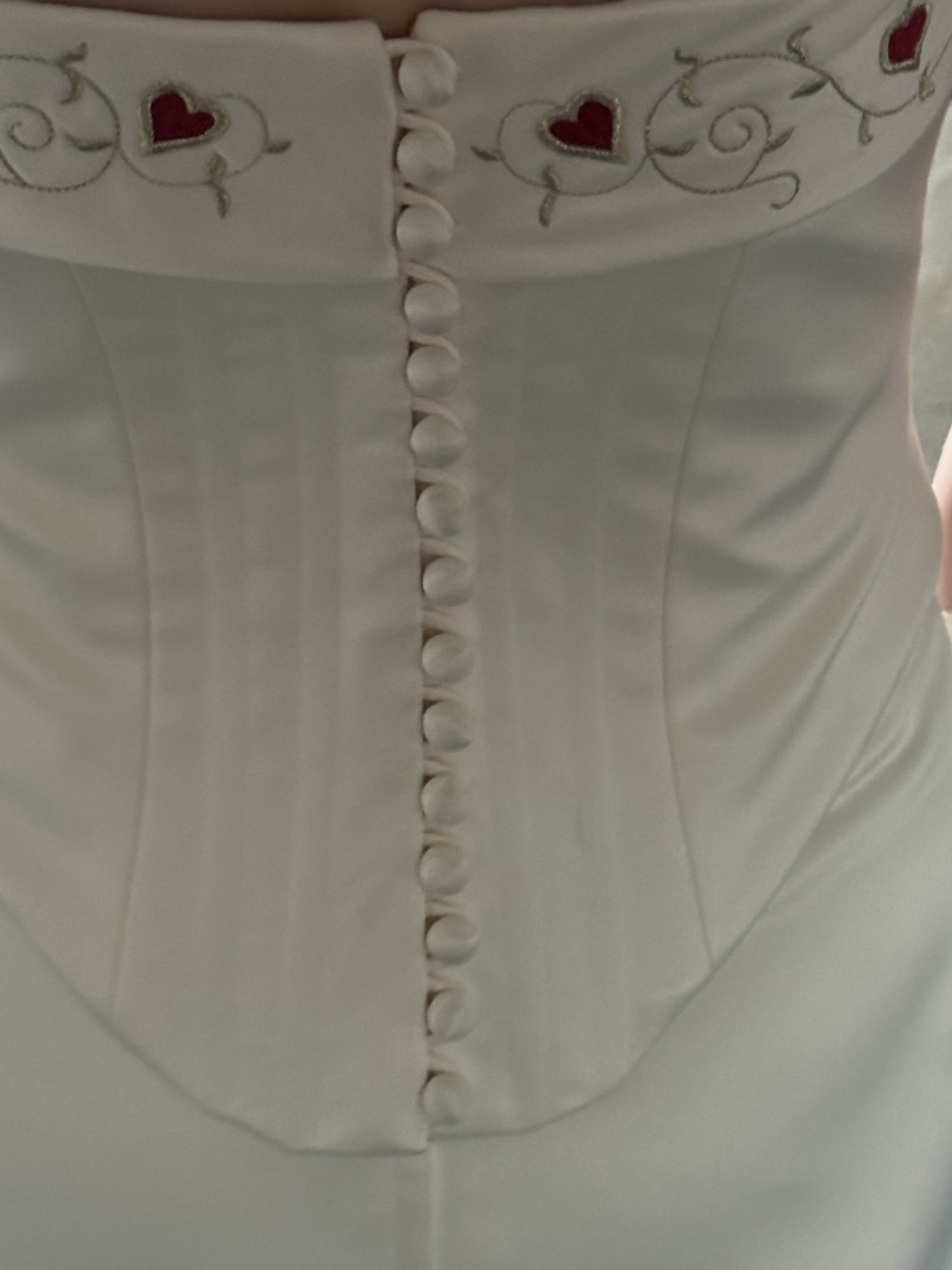 This stunning Catherine Jane separates wedding dress was the perfect choice for my special day, and I want it to bring joy to another bride. With its straight neckline and strapless design, it highlights every curve while providing an elegant and timeless look. The low back adds a touch of allure, making it both sophisticated and beautifully romantic.