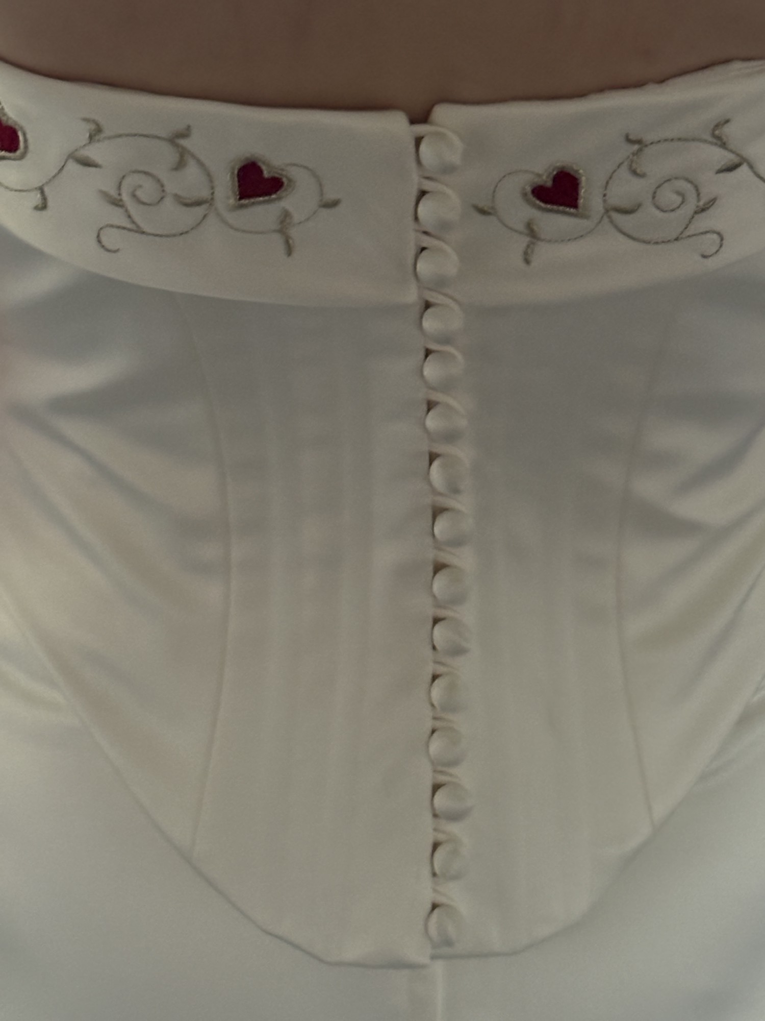 The floor-length style flows gracefully as you move, capturing the essence of bridal elegance. The exquisite embroidery detail adds a unique and personal touch, catching the light in the most enchanting way. I felt like an absolute dream in this dress, and I'm excited to pass it on to someone who will create their own magical memories in it.