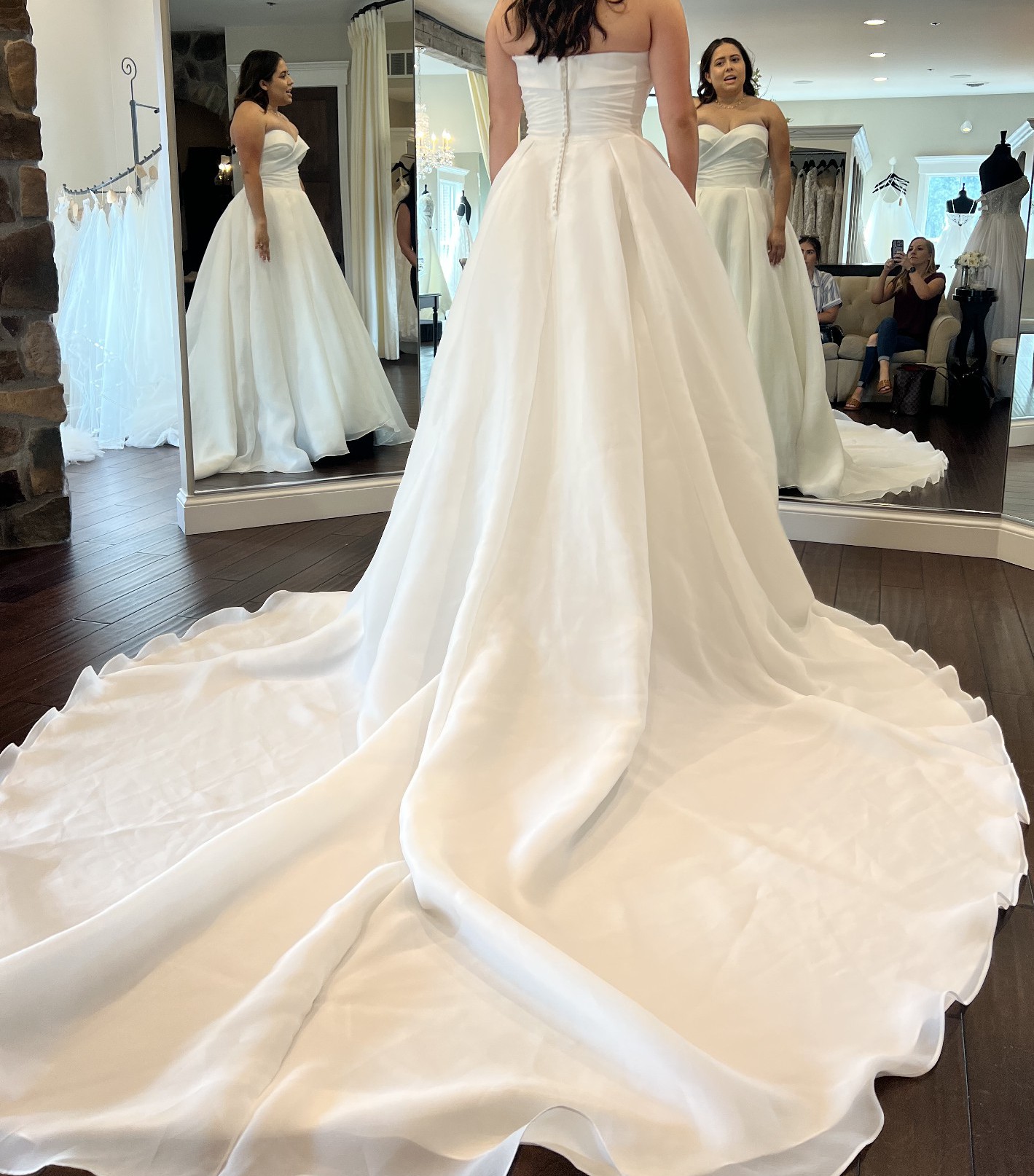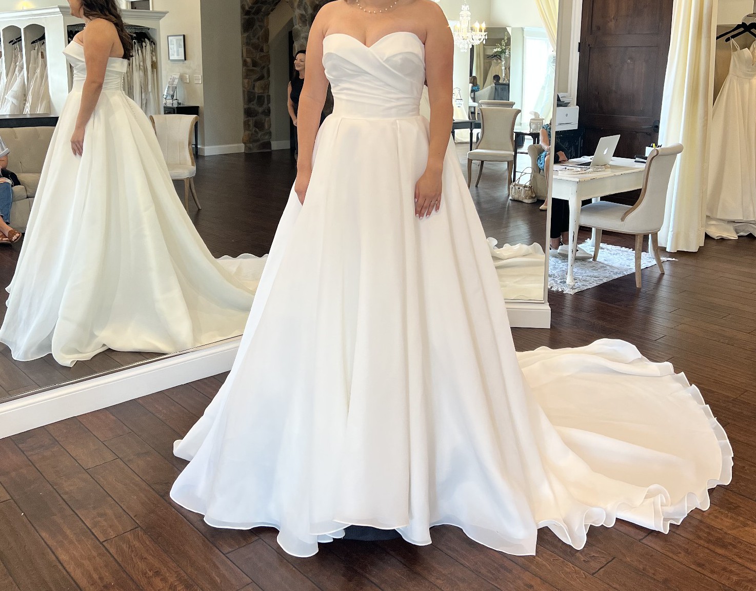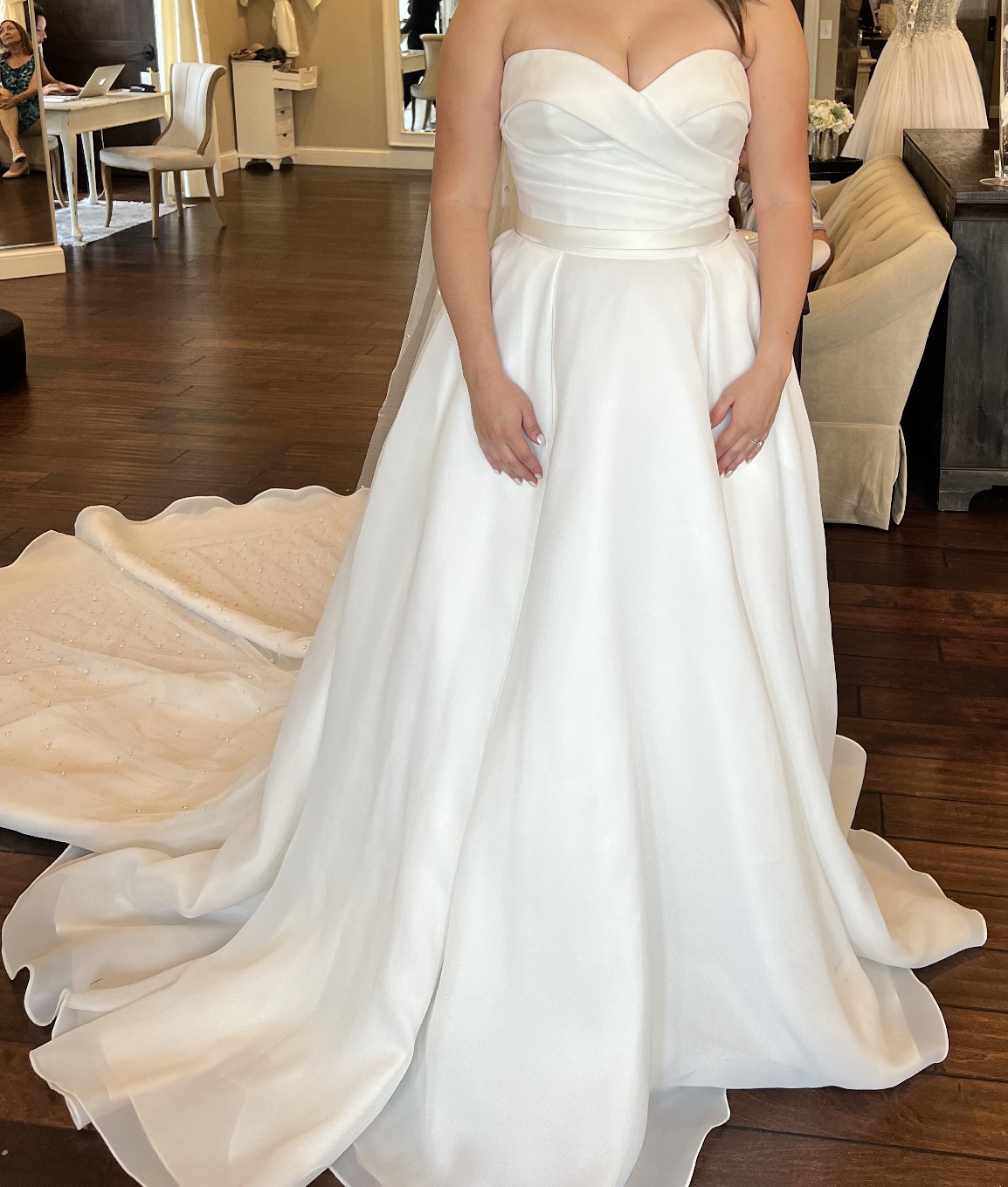Princess organza wedding dress with sweetheart neckline. Off white color, US size 14. Still in designer bag, never altered or worn