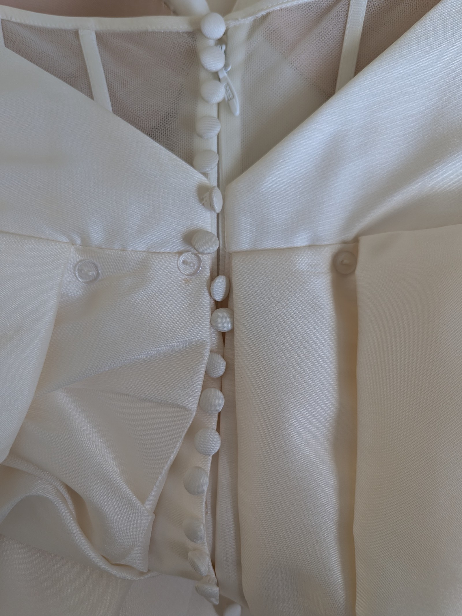 - Bustle added, Bust cups added, Hem shortened