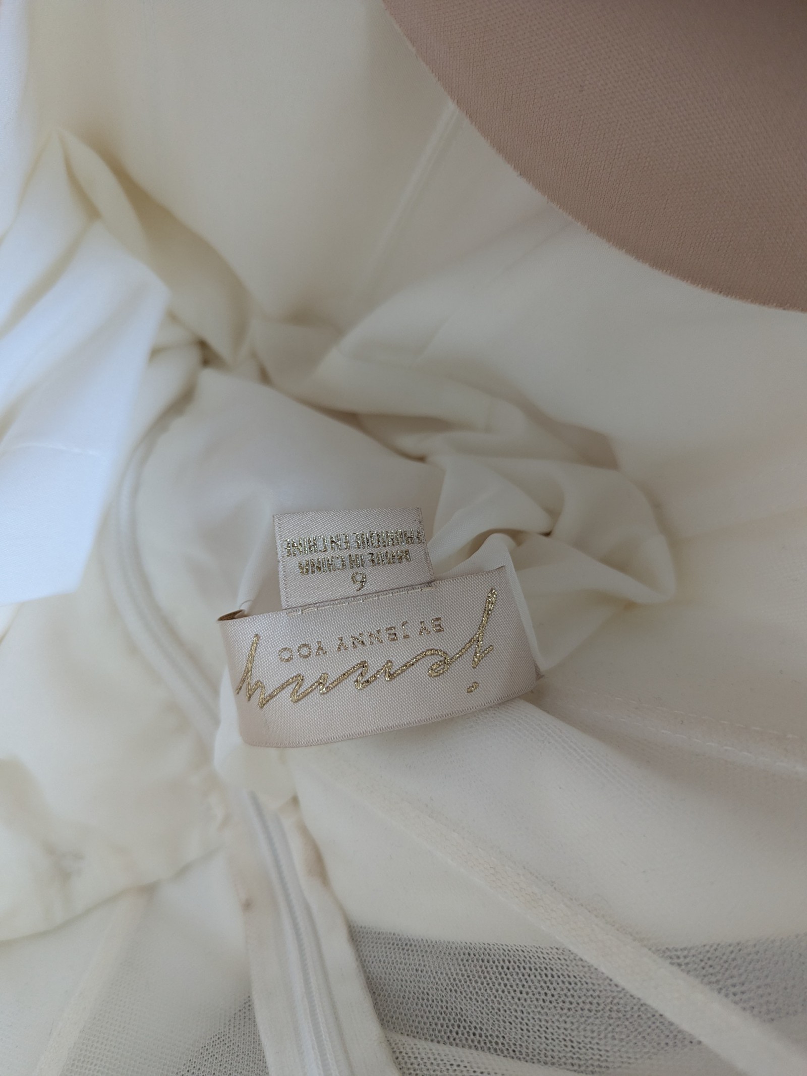 Jenny Yoo Preston dress. Alternations include added bustle, bust cups and hem. For reference, I am a little over 5' 3" and am wearing 4.25" heels in the photo. My bra size is 32C/D. The only noticeable marks on on the hem where the dress touched the ground, and a small mark on the middle bustle button. Can probably be washed out by hand. I will not be dry cleaning prior to shipping.