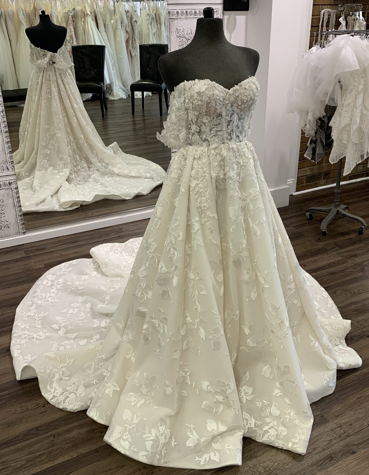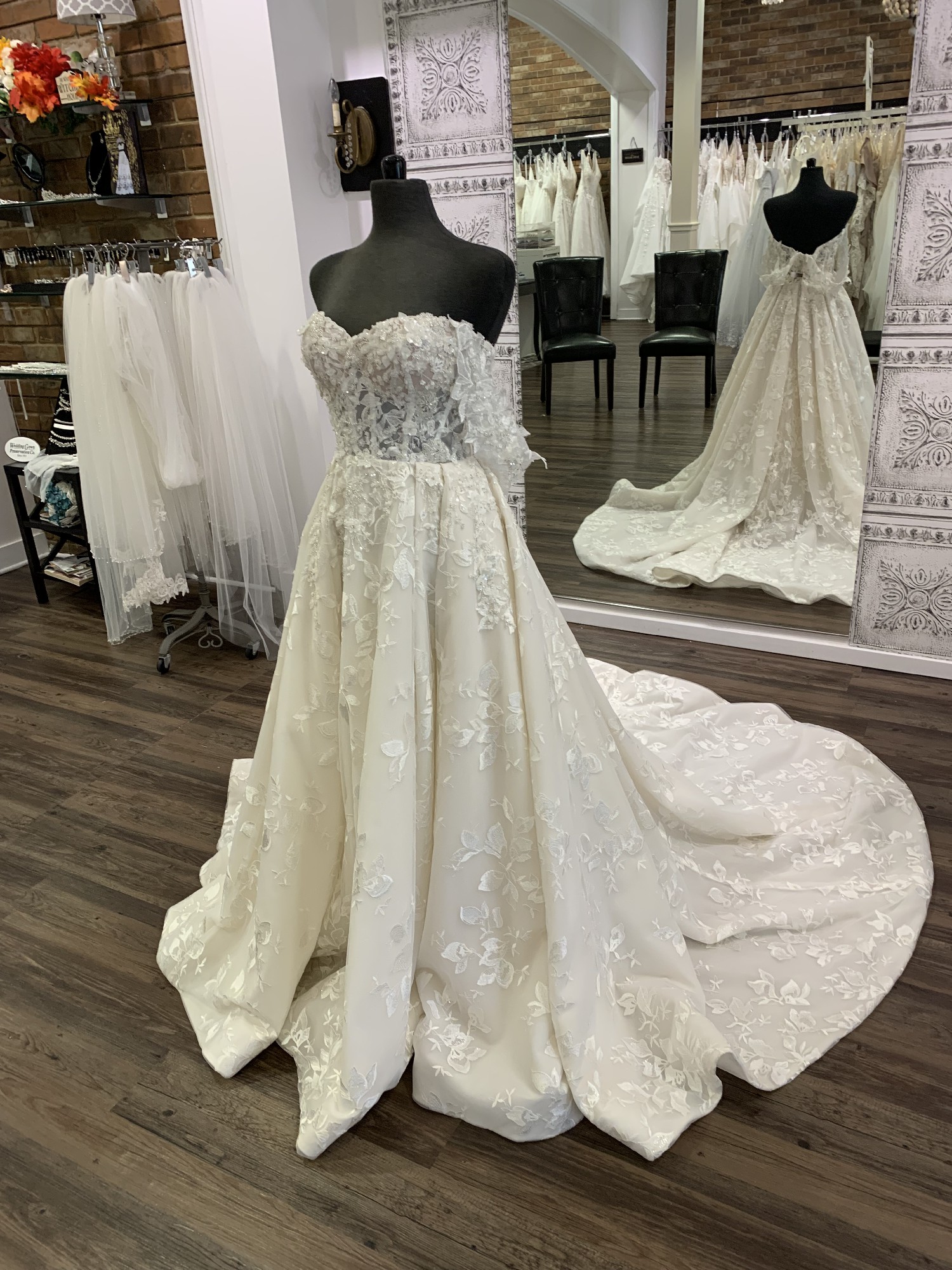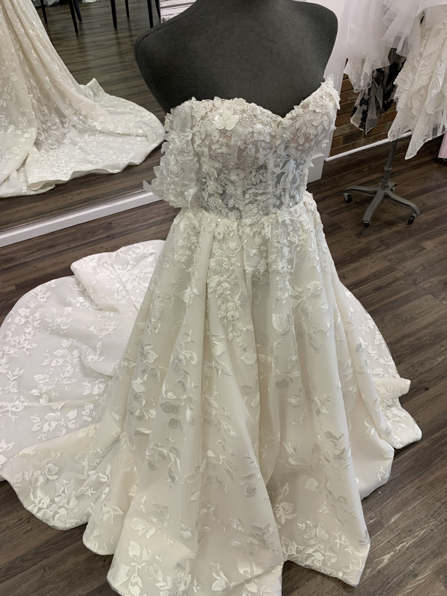 Pollardi Fashion Group is a couture designer from Ukraine whose beadwork and embroidery is unmatched; the Isona dress is absolutely FABULOUS. Originally $2499.99, and it is brand new, never been tried, on but has been in our store in Peoria, IL and is ready to find it’s forever bride. ❤️