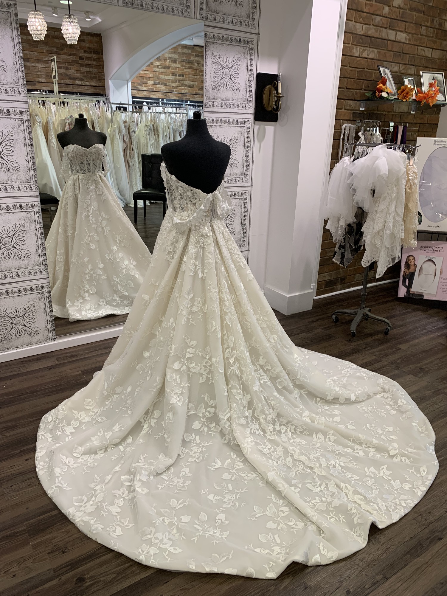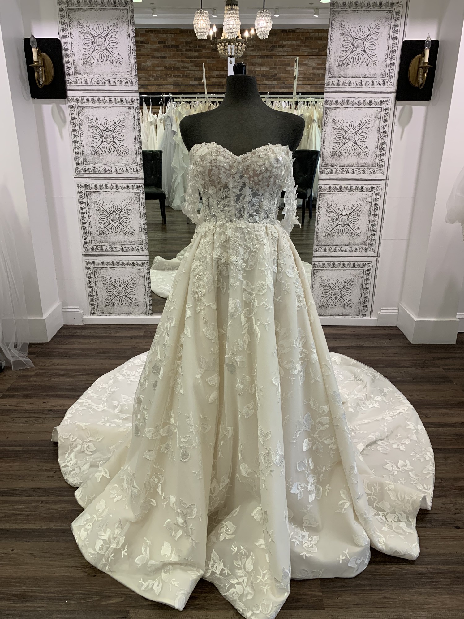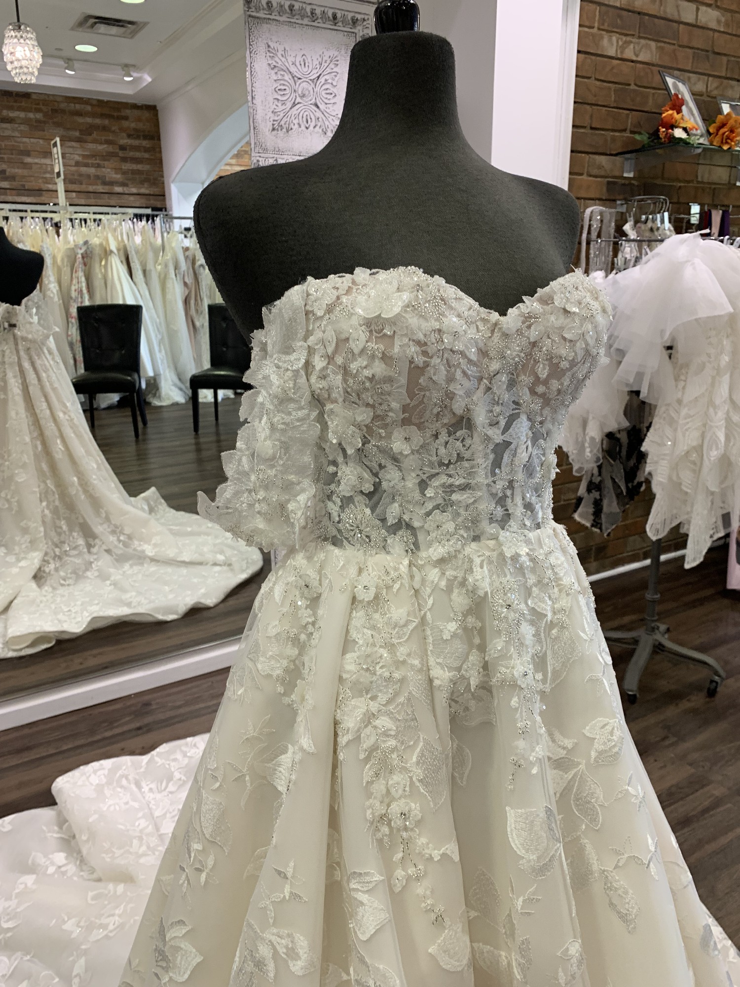 Pollardi Fashion Group is a couture designer from Ukraine whose beadwork and embroidery is unmatched; the Isona dress is absolutely FABULOUS. Originally $2499.99, and it is brand new, never been tried, on but has been in our store in Peoria, IL and is ready to find it’s forever bride. ❤️