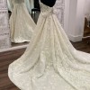 Intricate beadwork, beautiful lacework in the skirt, finished bagged hem for a clean photogenic look…it’s EVERYTHING you’d want in a vintage, glamorous princess-style wedding dress. Sleeves are also detachable so you can have them for the wedding and take them off for the reception.