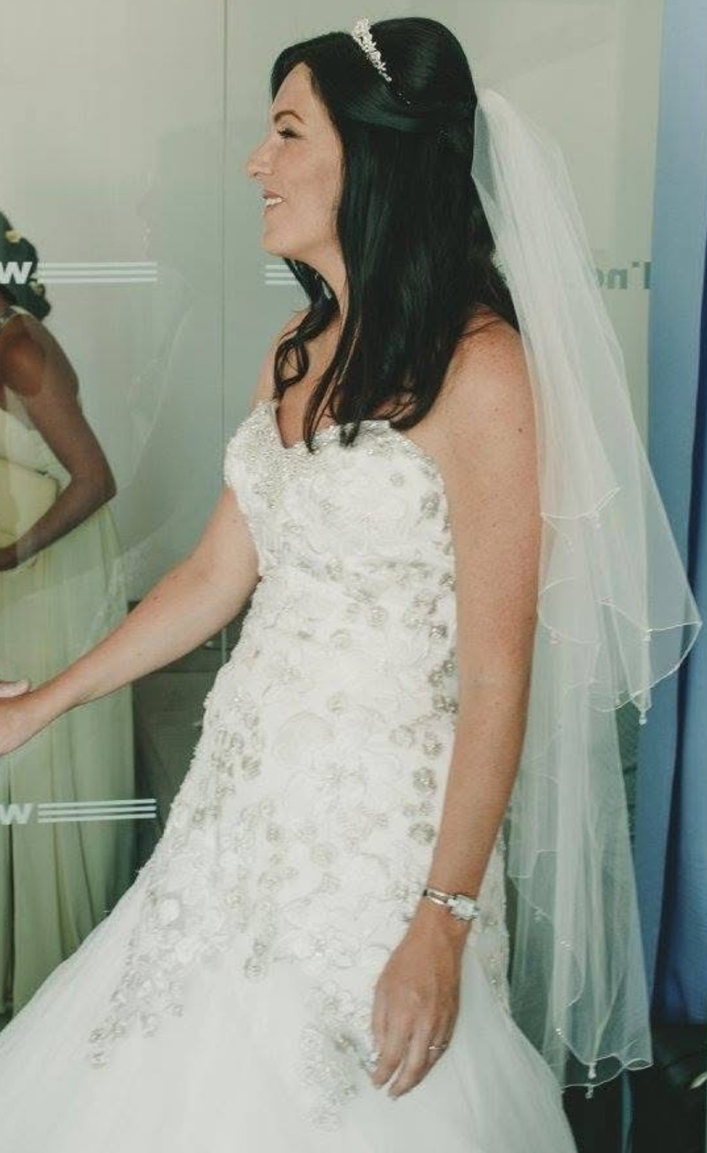 The dress also comes with an underskirt, tiara and veil that I purchased to wear along side my dress on my special. If you zoom in on the picture of the veil and tiara you will notice they have beautiful detail to compliment the dress.