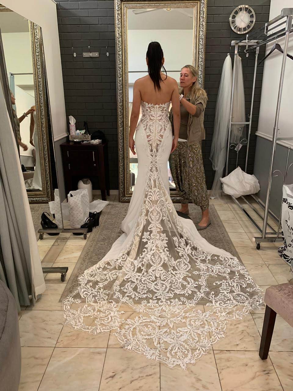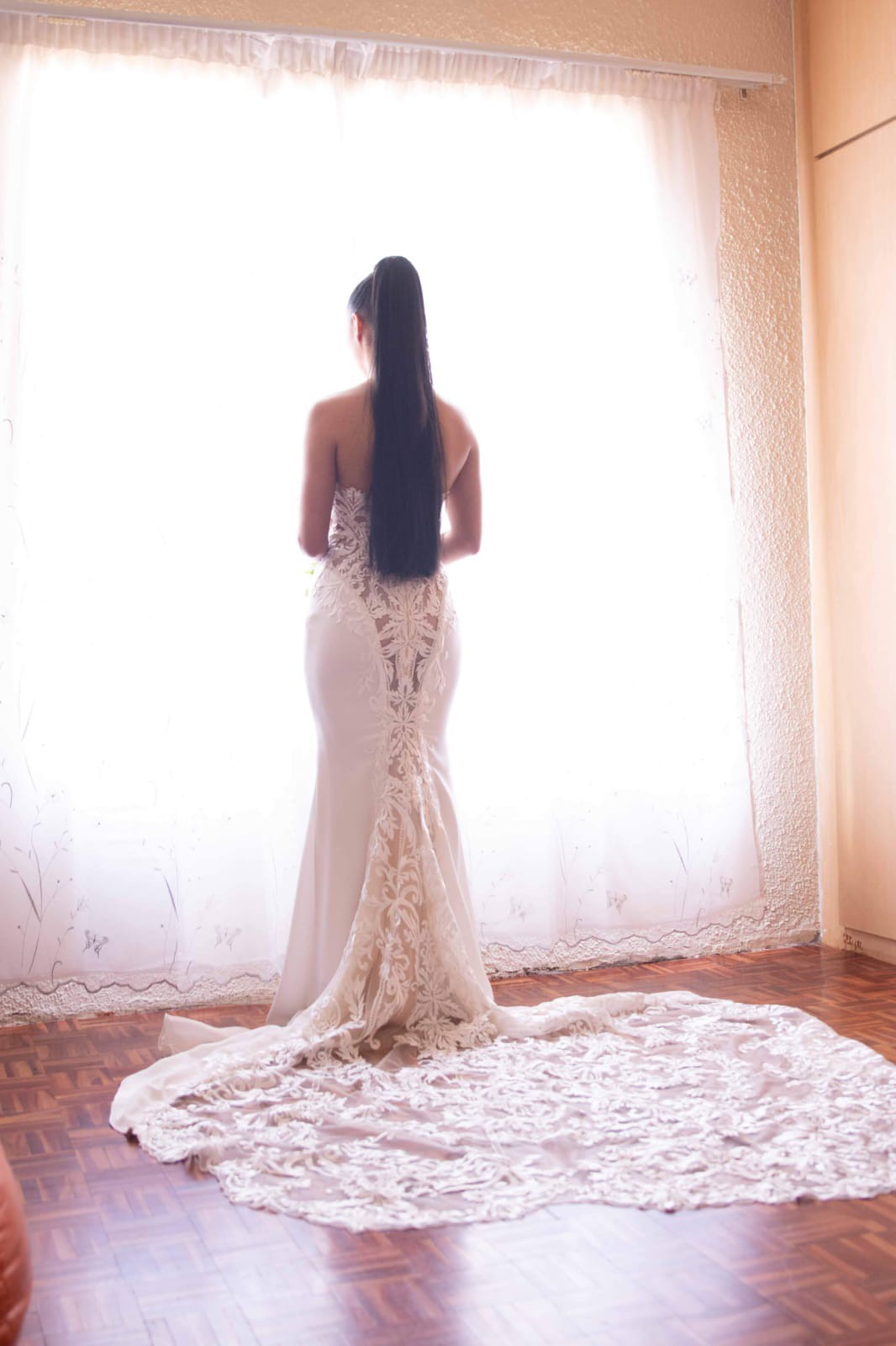 I hope this dress can help make another couple's special day as magical as mine. It comes from a smoke-free home and has been meticulously cleaned and preserved. If you're looking for a gown that combines timeless elegance with modern allure, this dress is meant to be your own.