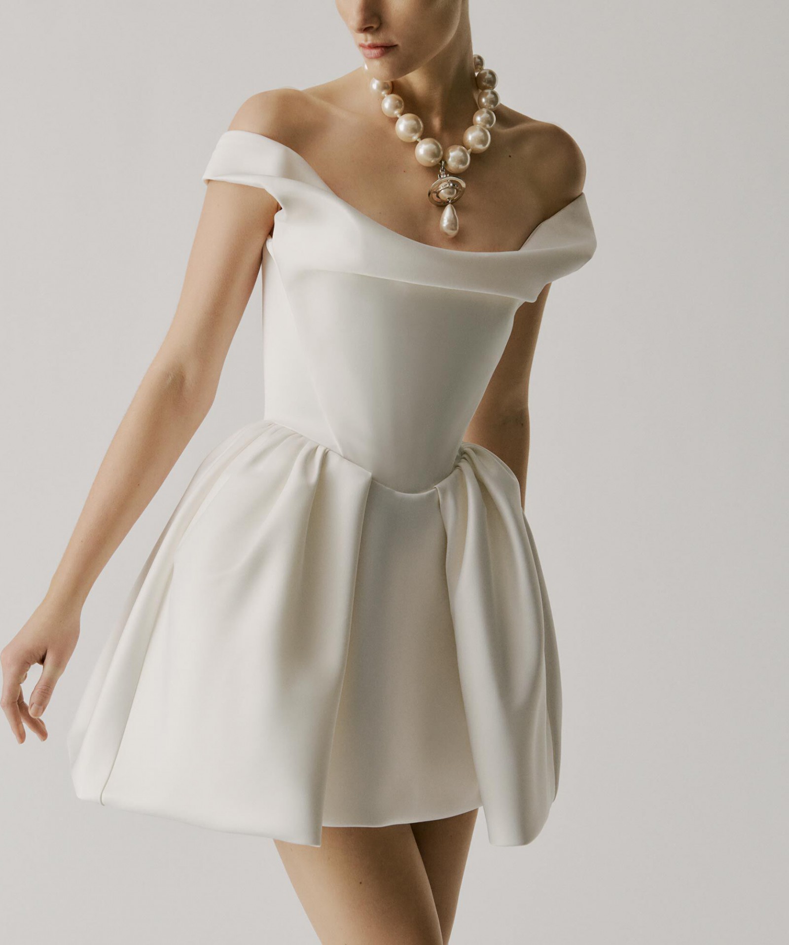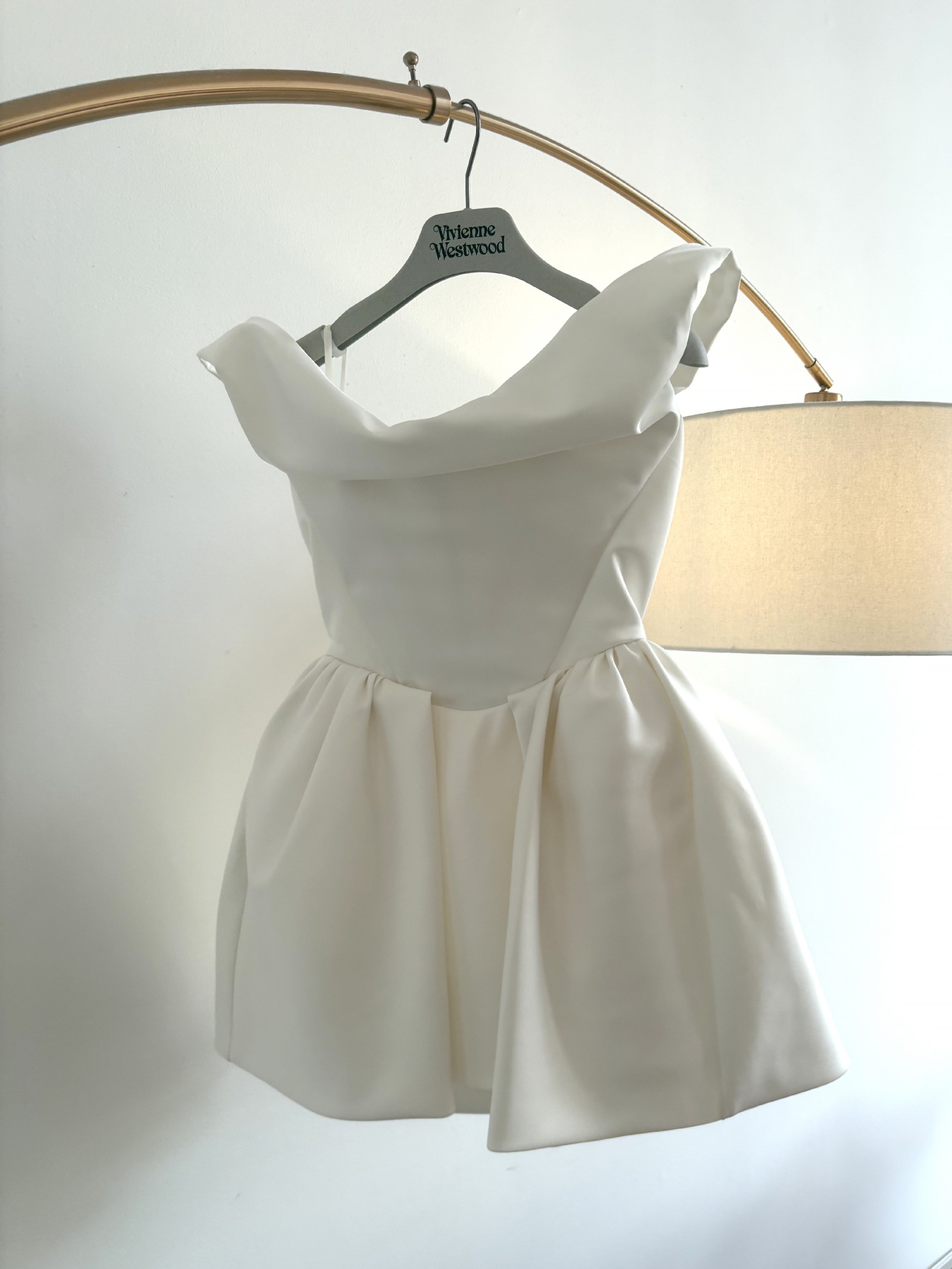 Currently retailing on the Vivienne Westwood site for $5,780 plus tax: https://www.viviennewestwood.com/en-us/bridal-boutique/mini-bagatelle-dress--pearl/8053195022113.html