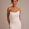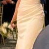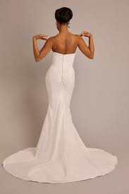 Make your wedding day unforgettable in this romantic Galina Signature SWG985 gown from David’s Bridal. Originally $1,499, this designer lace fit-and-flare features a plunging illusion neckline, beaded lace appliqués, and an open illusion back that photographs beautifully. The soft tulle train adds the perfect touch of drama without being heavy or difficult to manage.