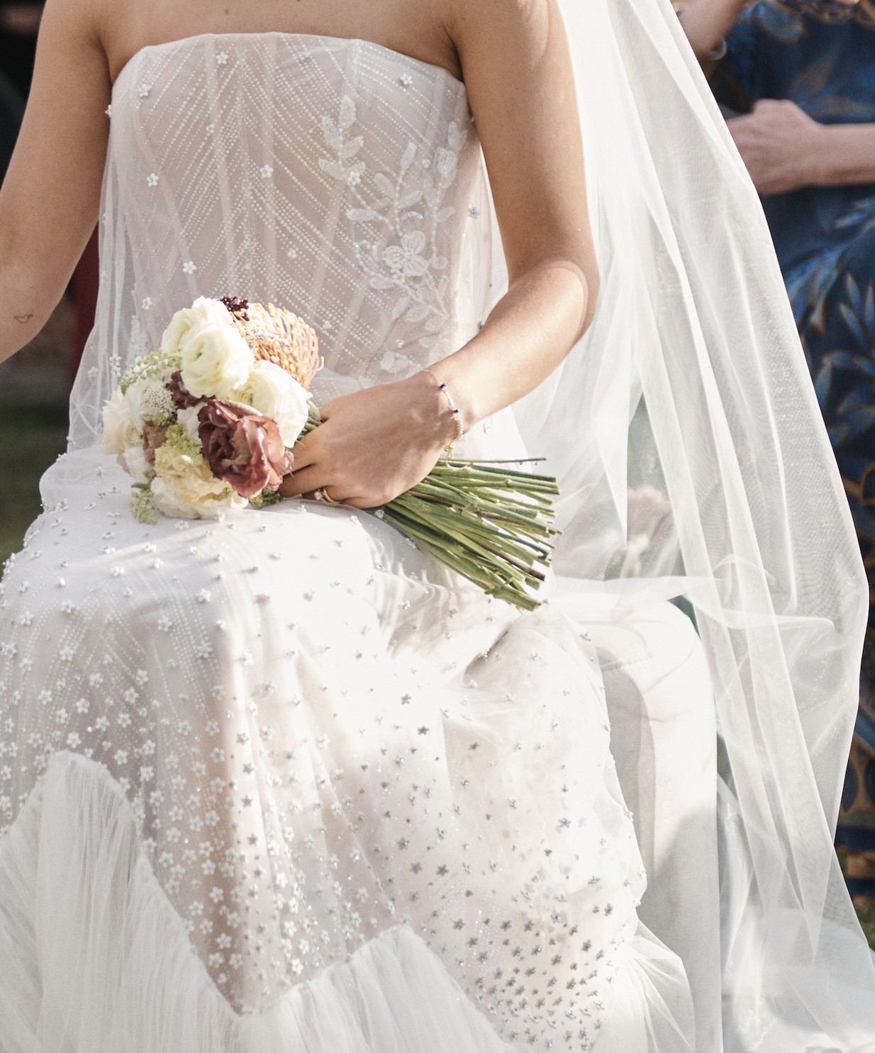As I slipped into this ivory creation, I was completely enchanted by its exquisite 3D flowers, delicate beading, and intricate embroidery. The sequins added just the right amount of sparkle, catching the light with every movement. The double-layered design really makes it unique, modern and one-of-a-kind.