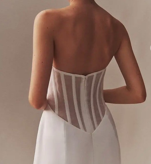 This dress has been hemmed for 5'5" - 5'6" with a moderate heel worn. No other alterations have been done to this dress. The hemming alterations cost $265. The dress cost $2,060 once taxes and fees were added at the bridal boutique, without hemming alterations. I bought at a local bridal boutique brand new in Sept of 2025, had professional hem alterations done for floor length, and then had the dress professionally cleaned after being worn once at my wedding for another $220. All costs together were $2,500. I am looking to sell for the next timeless, classic, and modern bride for around $900. You will not regret wearing this comfortable and classically sexy dress on your big day. It's now “brand new” again after cleaning, with perfect hem alterations already done for you. Unless you are taller than 5'6" this is the dress for you! I also know it will fit if you well because again, it’s just such a forgiving and lovely fit for the female body, right around a regular dress size 6, even a dress size 4 or 8 would do.