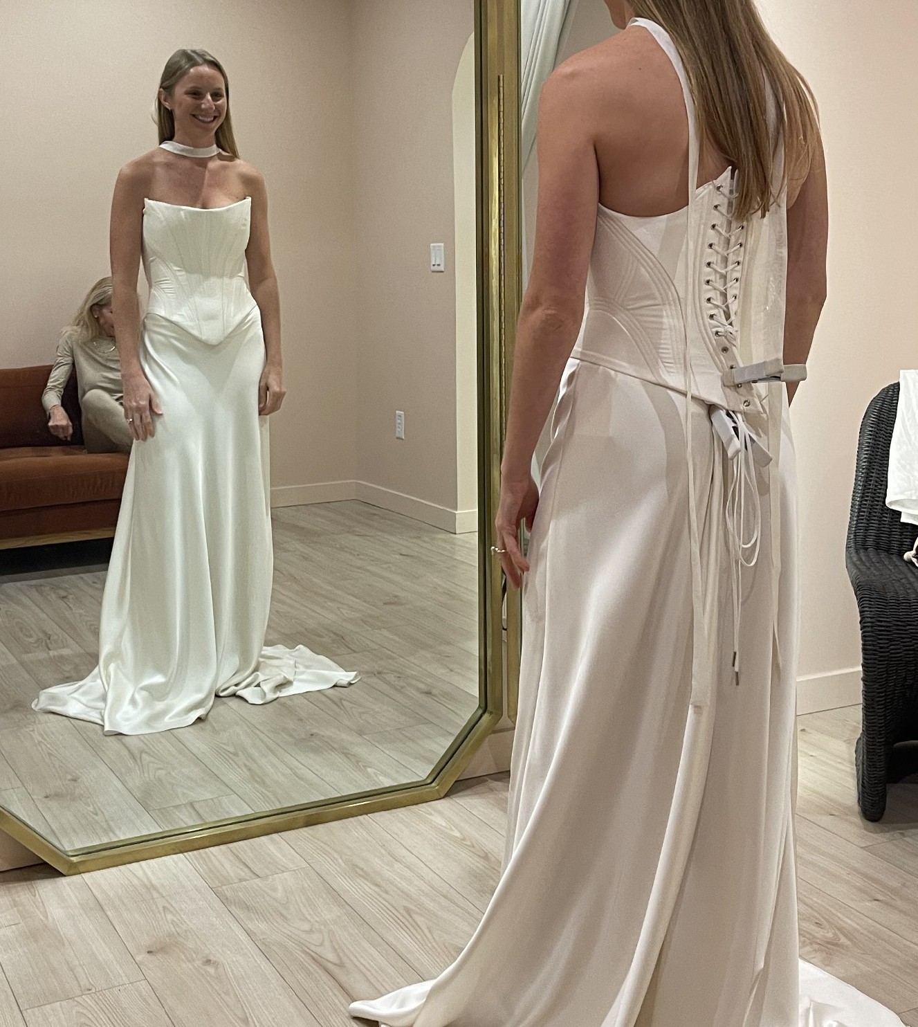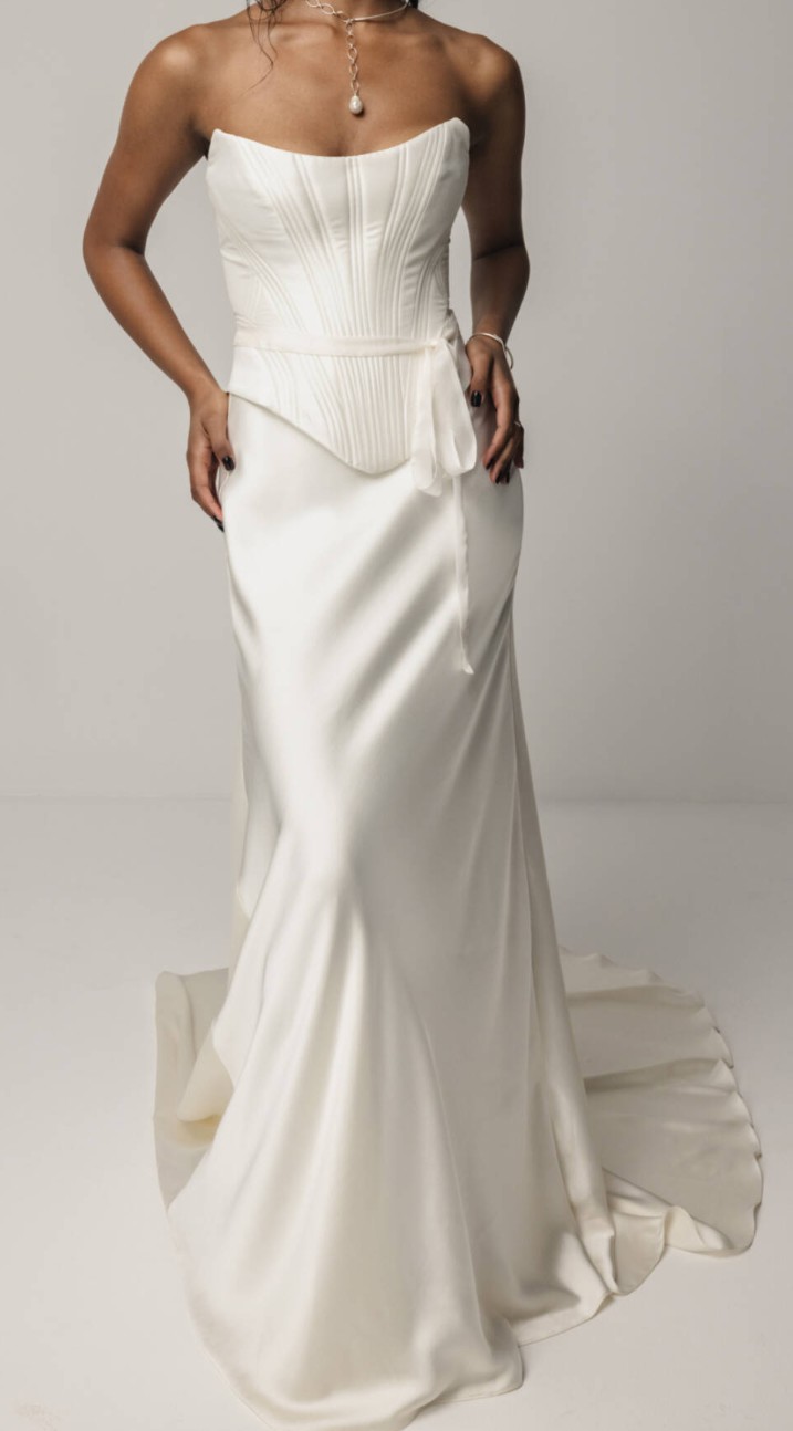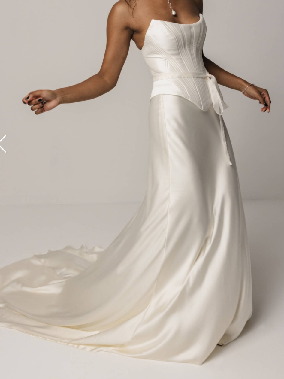 This Josephine Ensemble from SAINT Bridal Couture is the epitome of modern elegance, designed for the bride who seeks a unique yet timeless look on her special day.