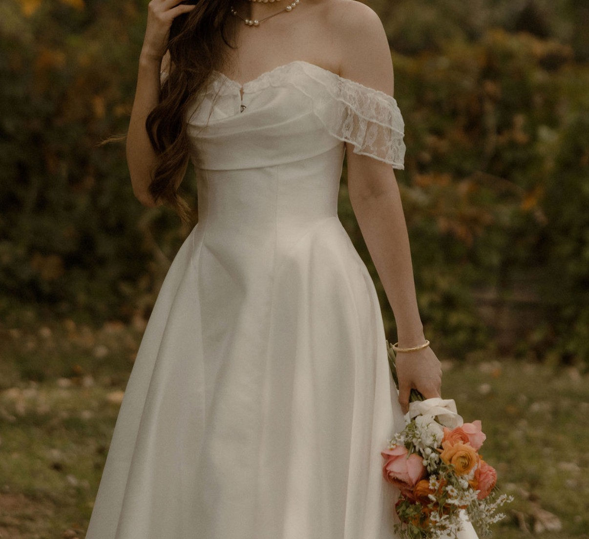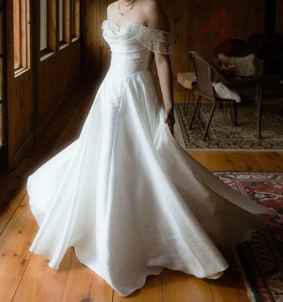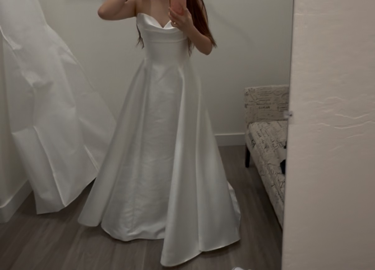 Beautiful strapless drop waist Jenny Yoo Romina dress. This dress has a beautiful neck line and the drop waist had me hearing many compliments not only from wedding guests but by other brides during my alteration appointments. I had it altered to extend an inch in the bust and added cups to the dress. It is also altered at the bottom for my height at 5ft 5in for 2.5in heels. The dress itself is strapless as seen in the very last two photos (the sleeves are from a corset wore underneath on the actual wedding day). I switched into a reception dress so the dress has no food stains and was only worn for the outdoor ceremony.