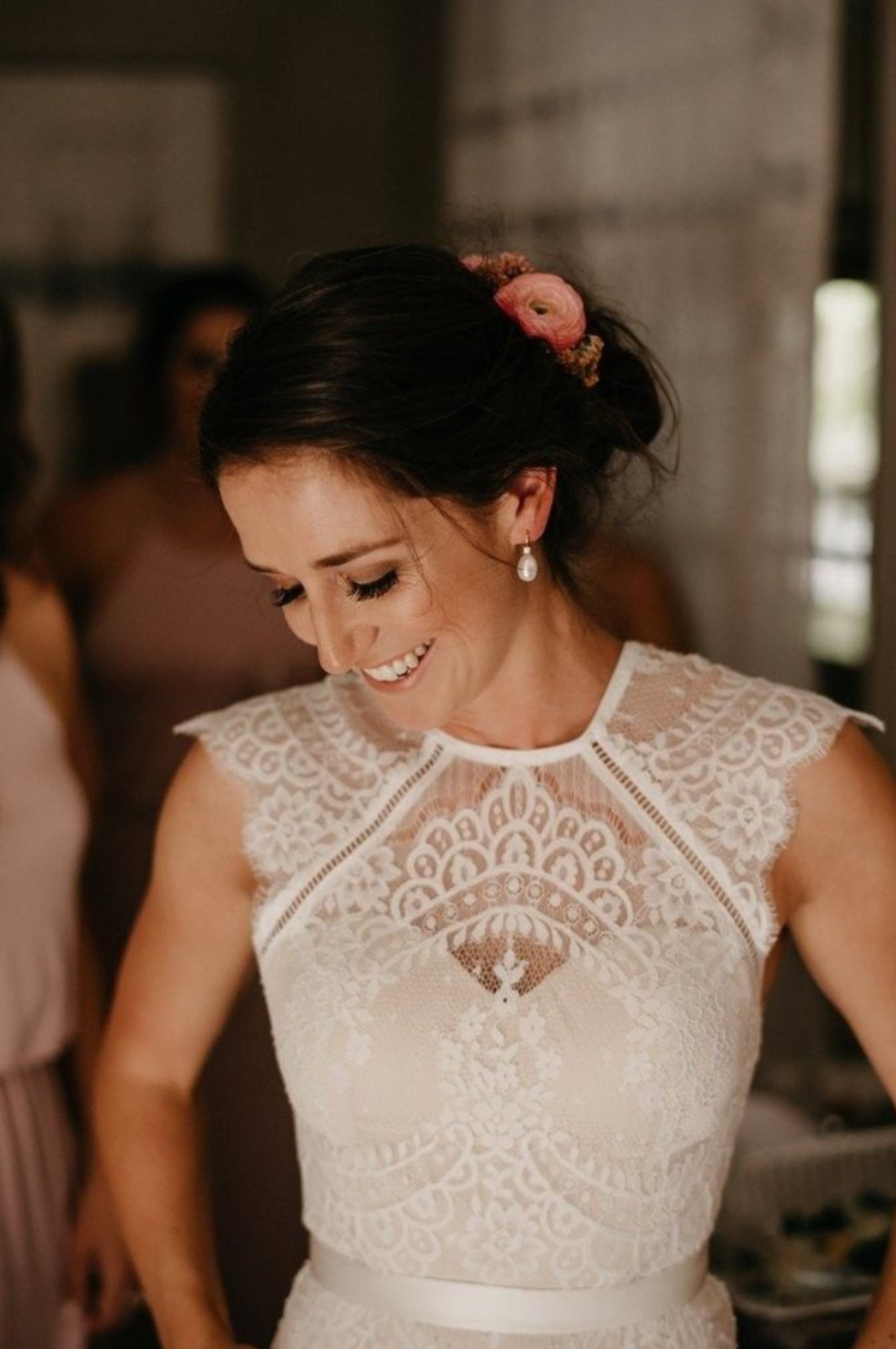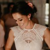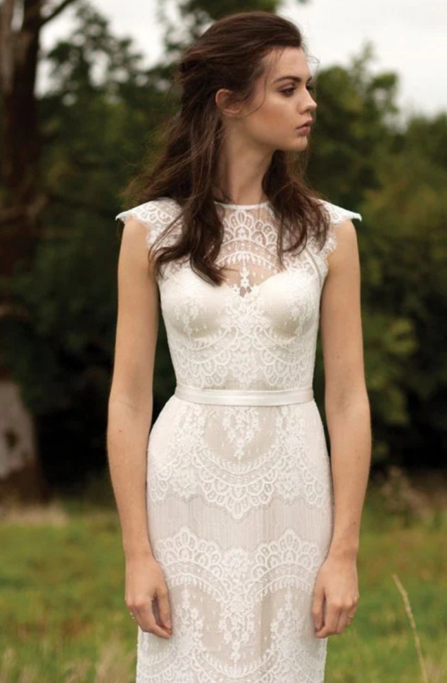 This Suri Gown by Catherine Deane is the epitome of elegance and romance. As soon as I slipped it on, I felt like a true bride, and I know it will bring the same joy to someone else. The sheath silhouette hugs your curves beautifully while allowing you to move with grace throughout the day. The high neck adds a touch of classic sophistication, paired perfectly with the delicate capped sleeves that provide just the right amount of coverage.