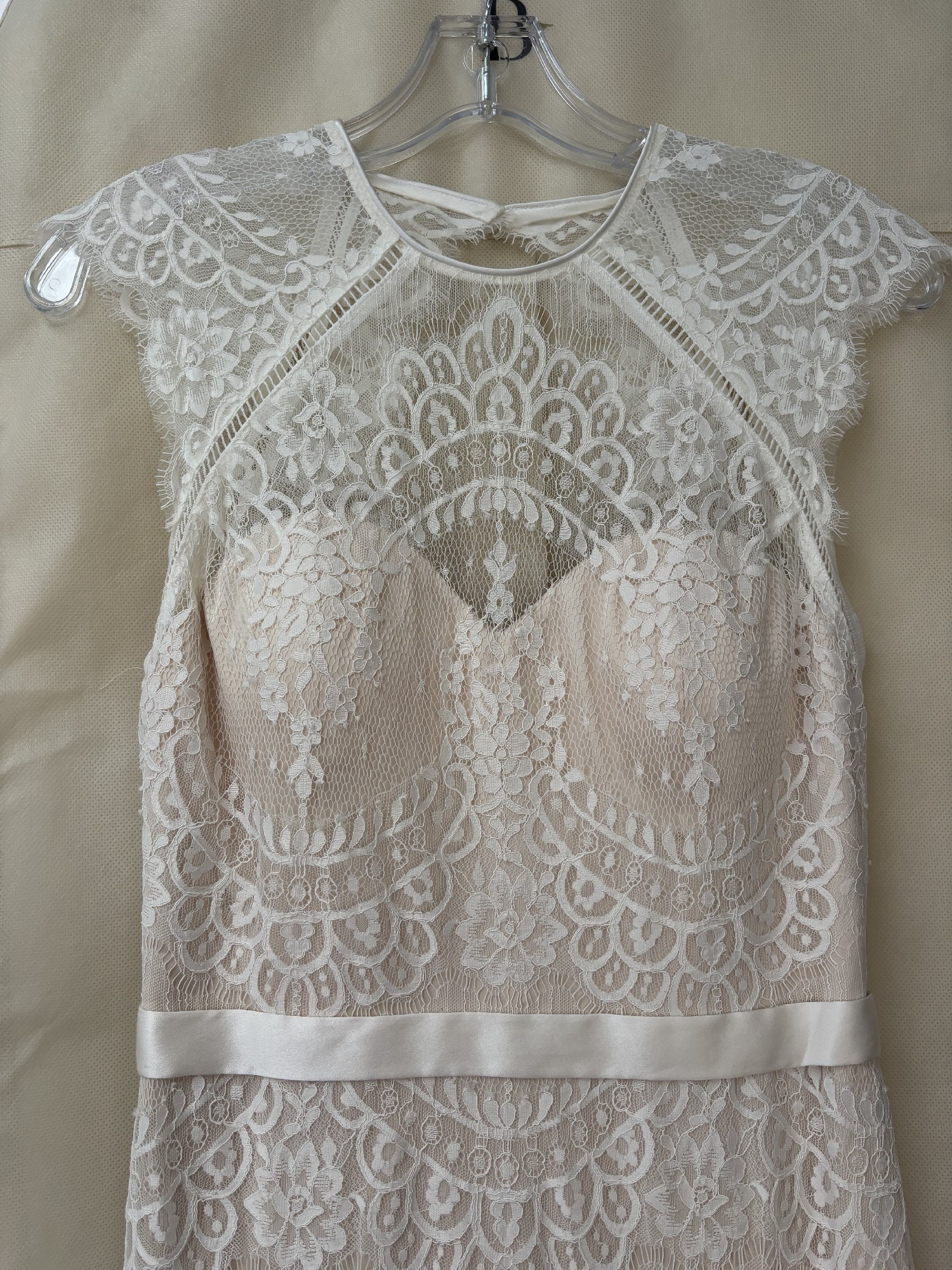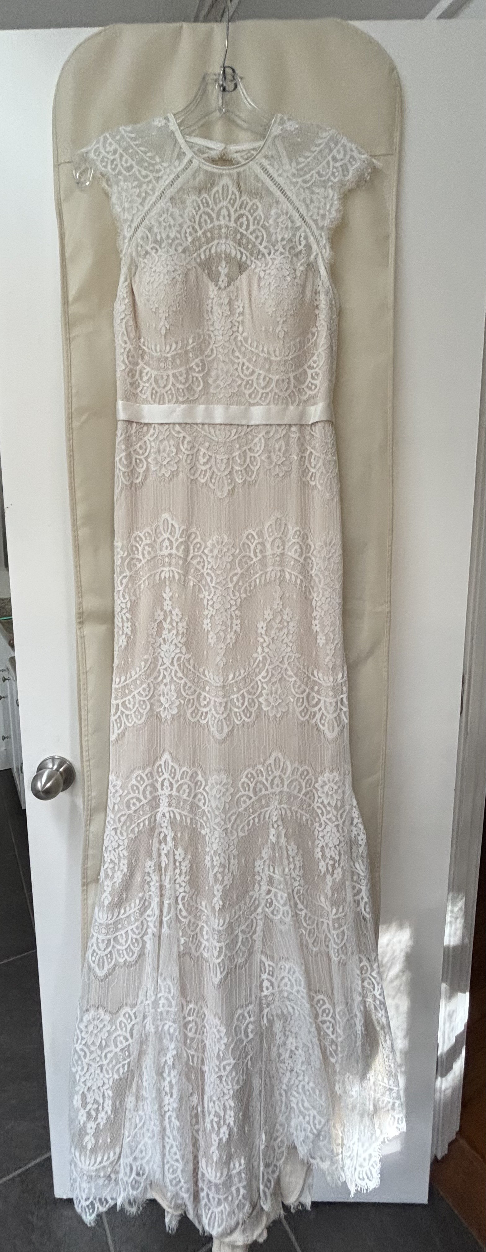 This gown is a size 4 and has been meticulously cared for, ready for another bride to cherish. If you're looking for a unique and timeless piece that embodies understated glamour, the Suri Gown may just be the dress of your dreams, just as it was for mine.