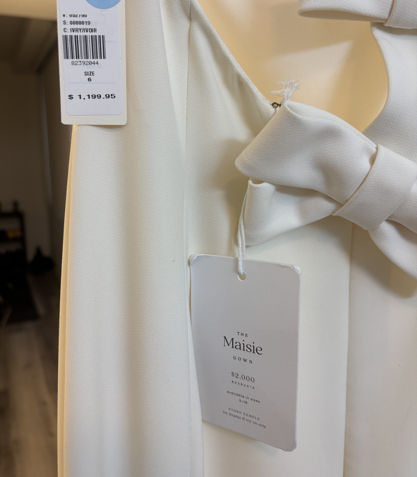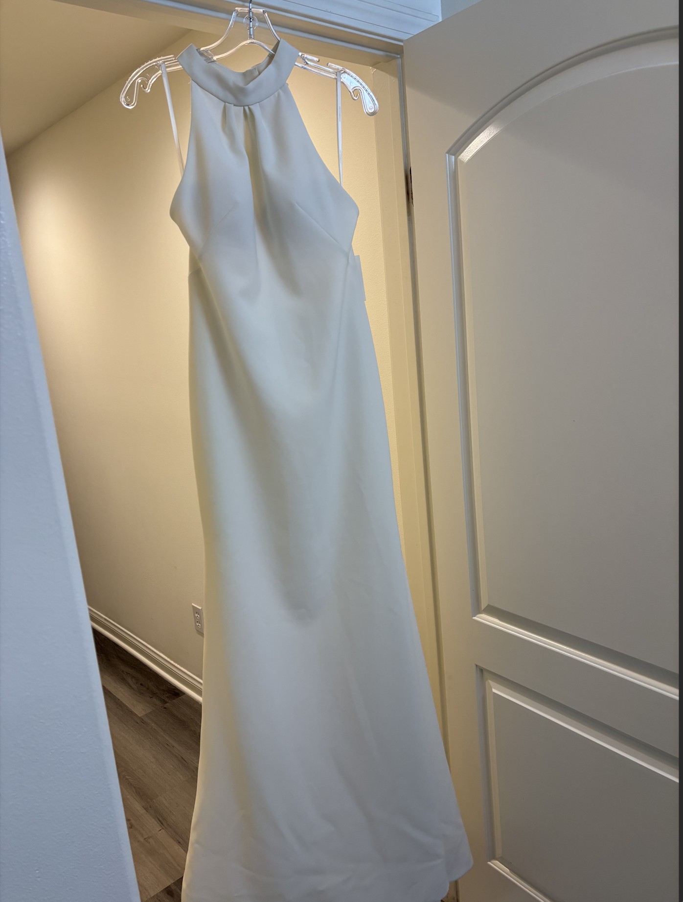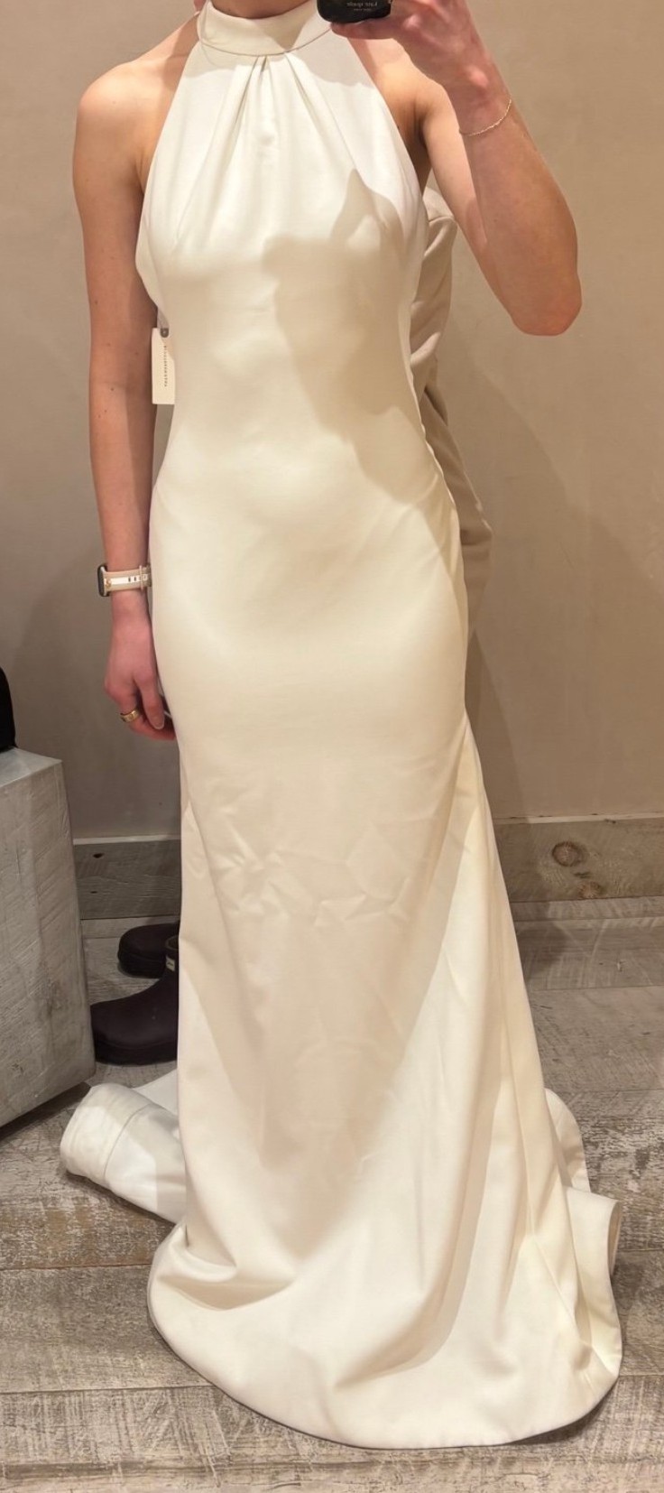 Dress was bought from the Anthropology Sample Sale. Dress was only worn for try ons. I never wore the dress and decided to sell it because too big for me. Original tags still on. High neckline with detachable bow details that snap on. Invisible back zipper and clasps.