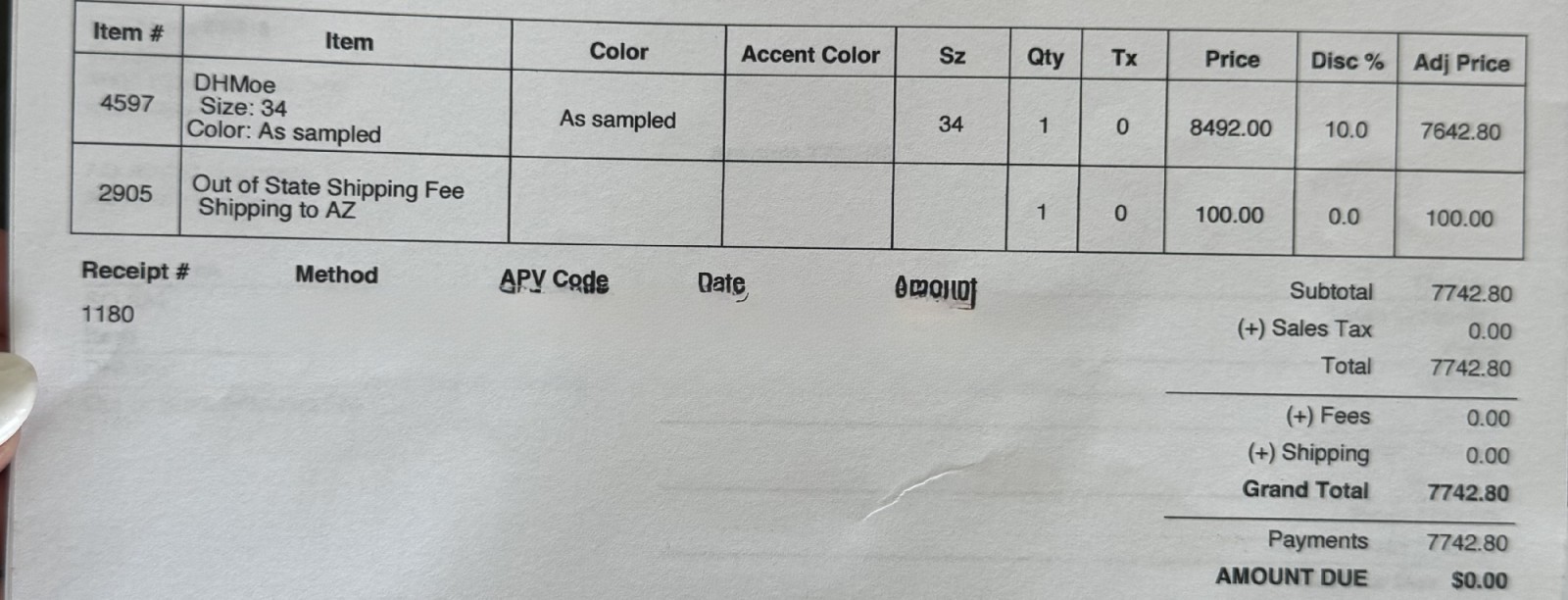 The dress is in perfect condition, professionally cleaned by Margaret's Couture Cleaners in Newport Beach, CA (cost was $687.99). I included a photo of the receipt for purchase of the dress & blurred out my personal info.
