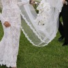 (I wore this with a Tony Federicci lace trim cathedral length veil, which I am happy to include, however it does have a hole in it.)