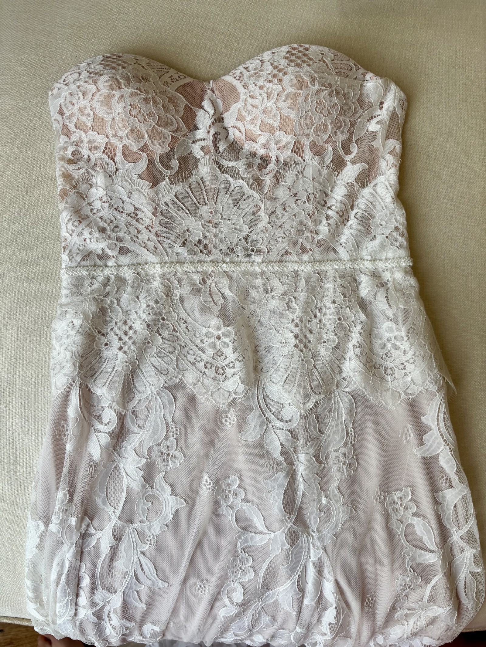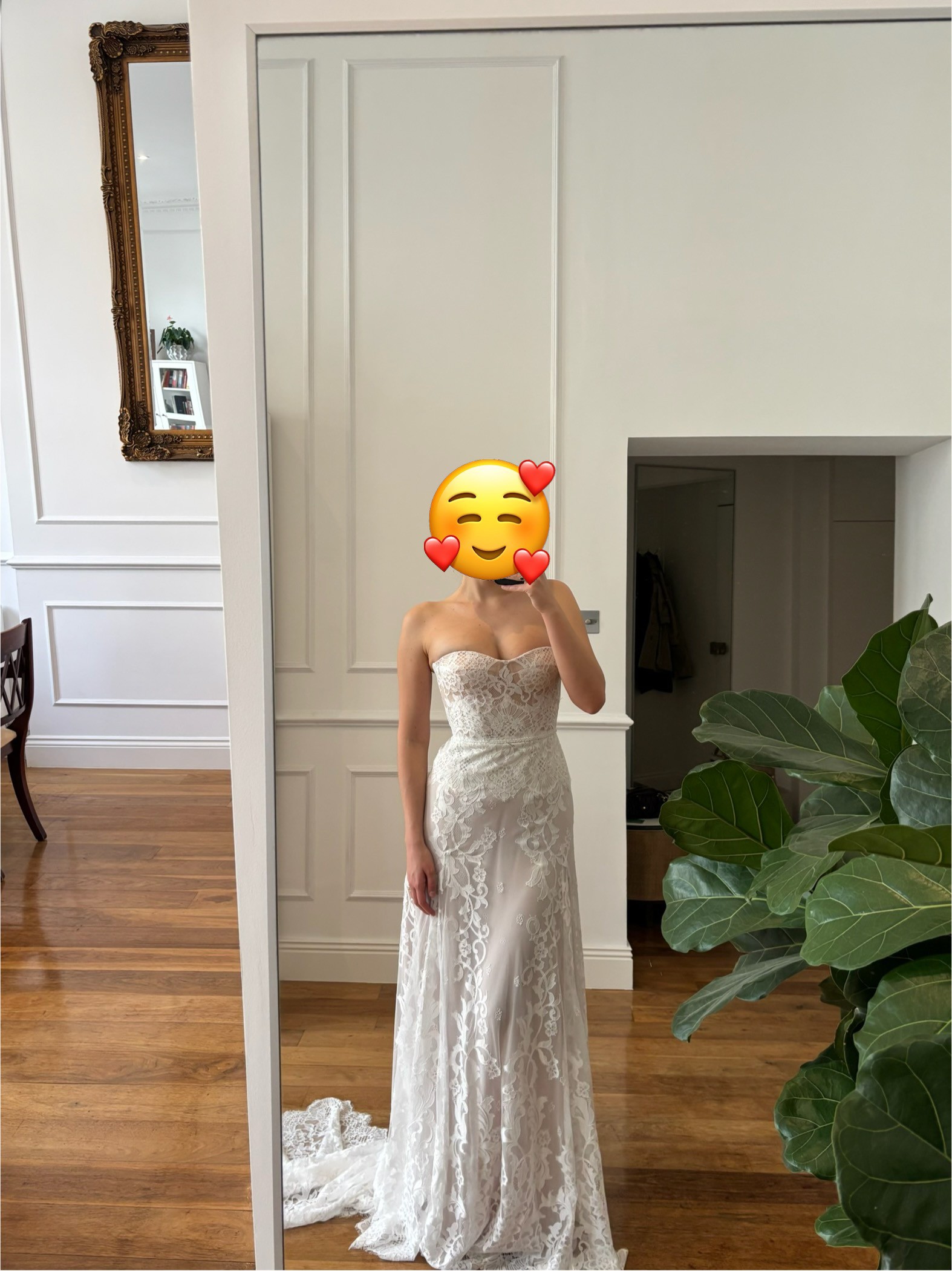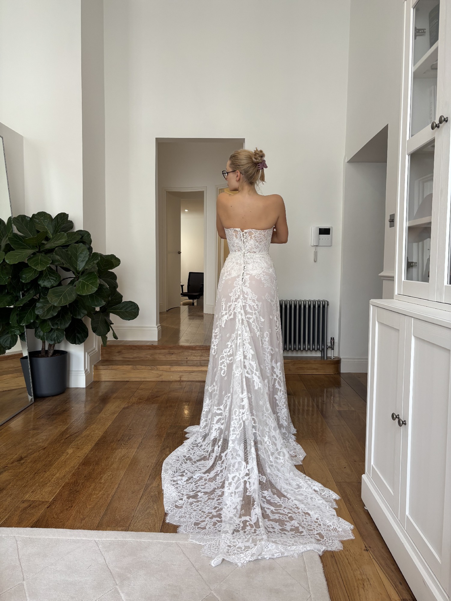 A STUNNING Juliette dress by Katya Katya with a £2.8k retail price. A light, delicate lace with a snatching internal corset.
