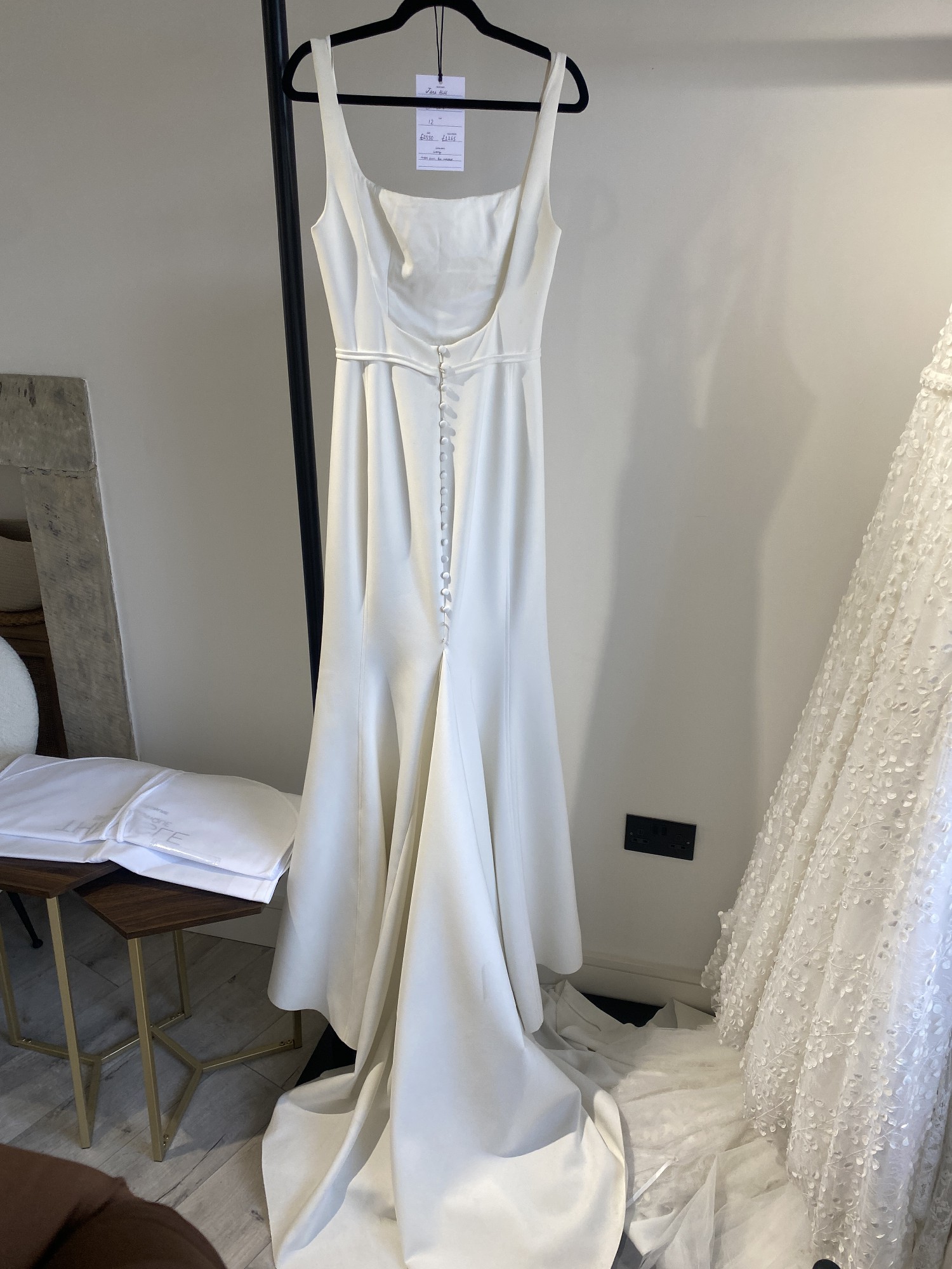 Jane Hill sample dress from The Aisle Studio. Samples have been tried and might need to be dry cleaned. Please note this has not been worn for a wedding. Couple of marks on the back so will need a dry clean. Postage via DHL £50 UK £150 Worldwide.