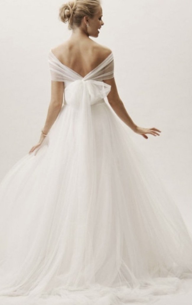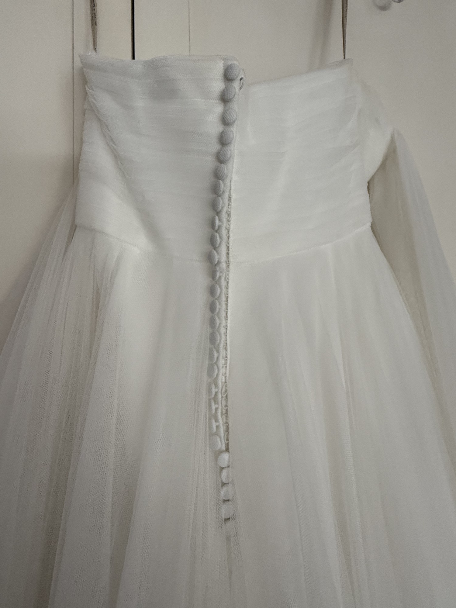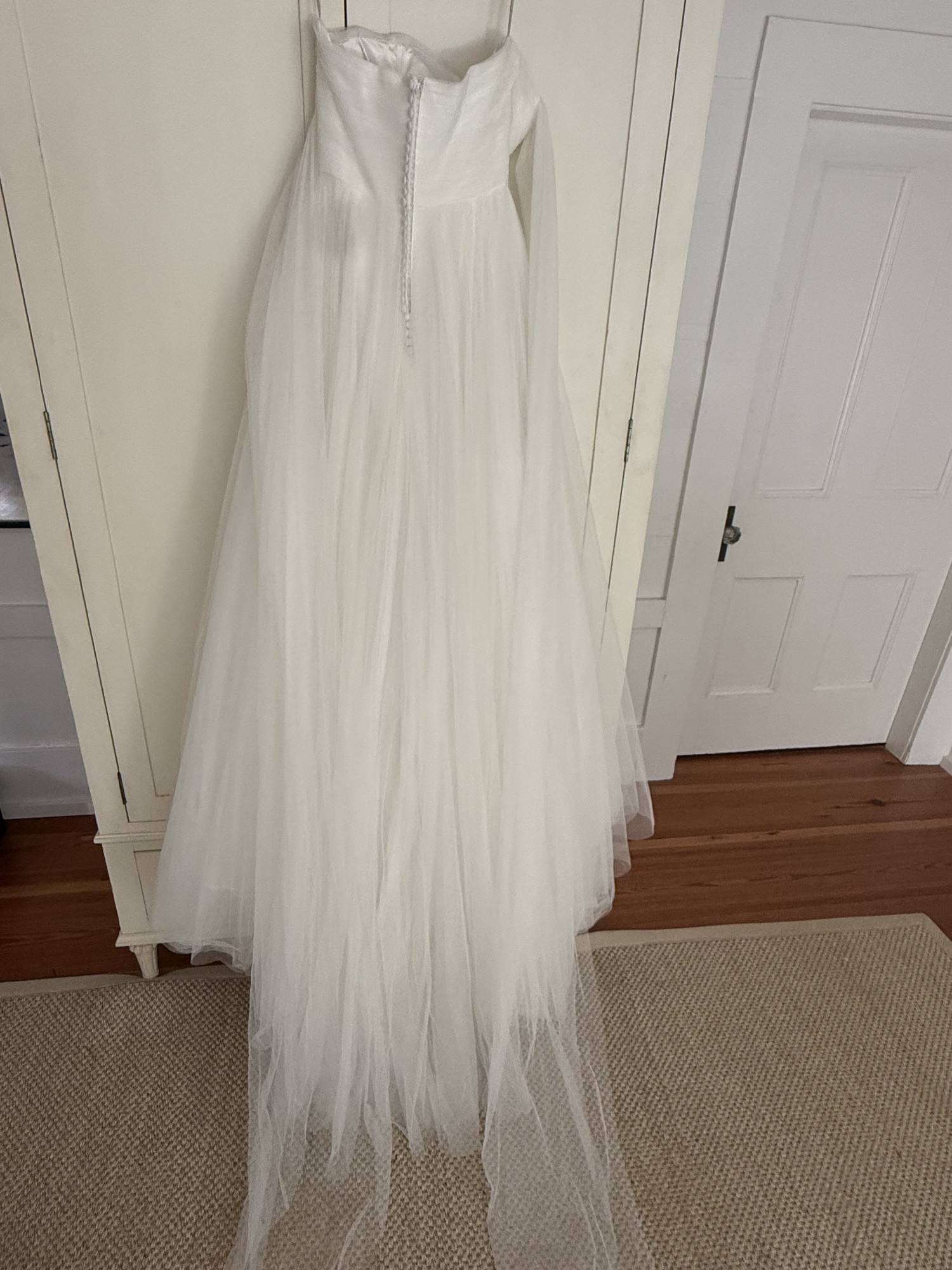 Only worn for about 20 minutes for pictures. Stunning convertible ballgown. Crafted from over 45 yards of tulle, it somehow manages to be incredibly lightweight and boasts over 16 ways to style its neckline; a few of our favorites include strapless, off-the-shoulder, and bateau. (You can look on YouTube to see how to tie the shawl part).• From the Jenny by Jenny Yoo collection