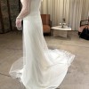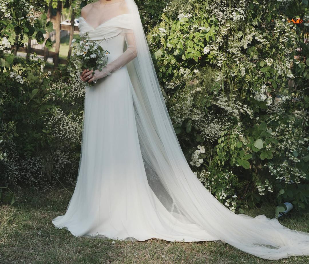 Only worn for one hour during the ceremony in May. It has been professionally cleaned and is in perfect condition. Was worn with 5.5 inch Aquazzura platform heels. Original wooden DF hanger, garment bag, and box come with the dress to make morning of photos extra special. Additional fabric has been preserved with the dress so that anyone can easily add to the length should they choose.