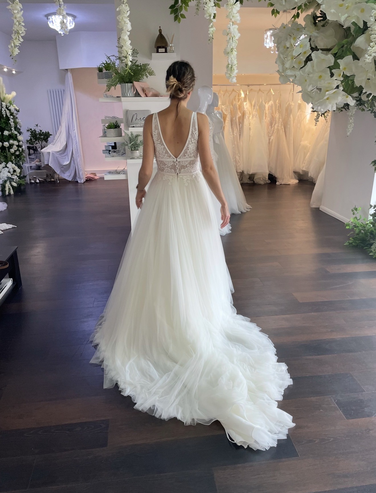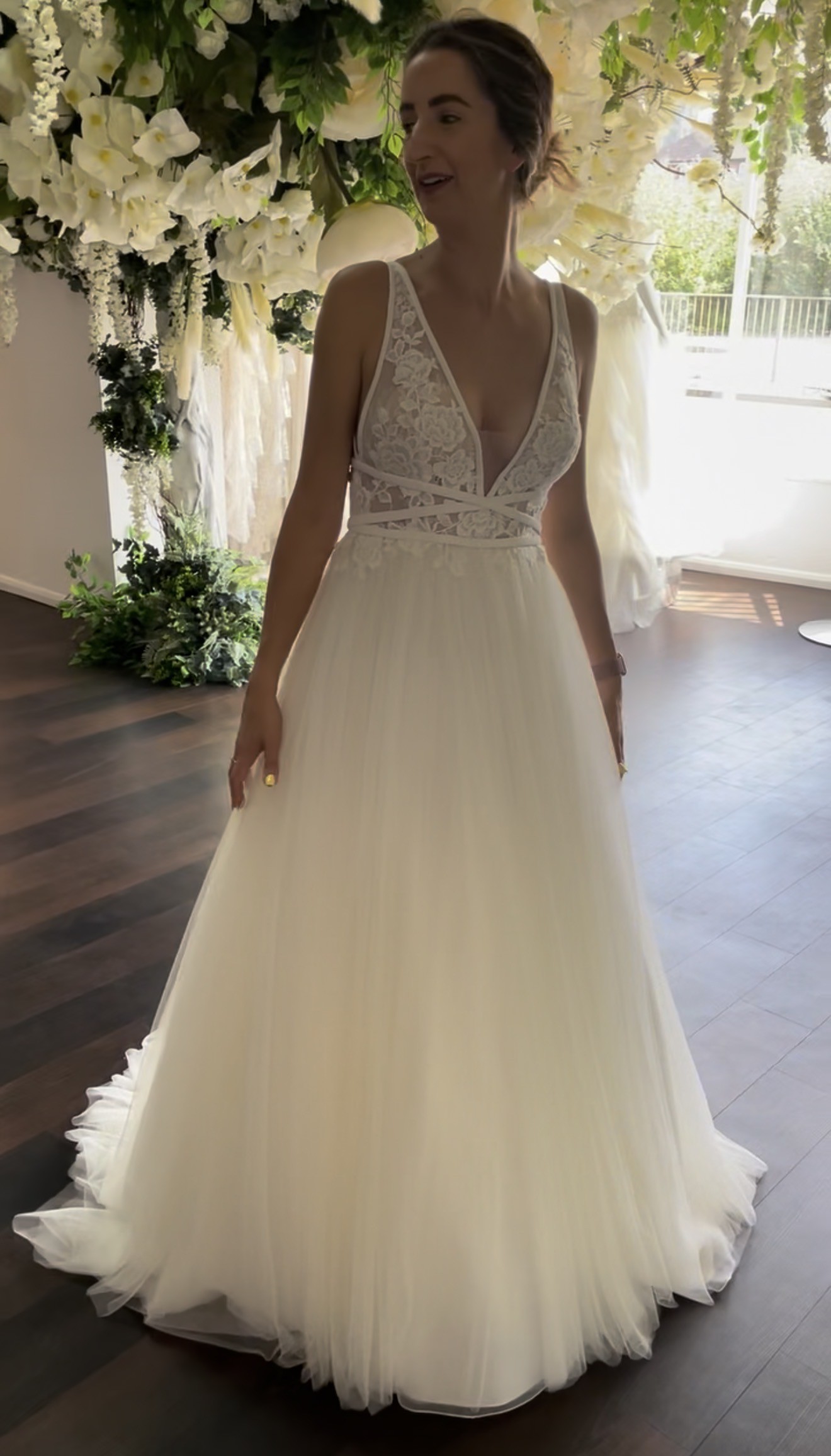Designed for comfort and sophistication, size 10 fits beautifully, allowing you to feel confident and radiant. Whether exchanging vows in a grand venue or an intimate gathering, the Marisol dress is sure to make every moment unforgettable, allowing you to shine as brightly as the love you share.