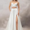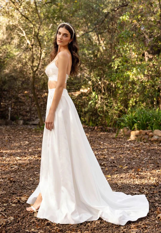 The Teffa Skirt is cut from structural Taffeta that adds a voluminous charm to this ballgown silhouette bridal skirt. Featuring a thick waistband that cinches in the small of the waist, an eye-catching thigh-high split, asymmetrical waist pleats and a sweeping train, this dramatic skirt is the perfect option for the modern bride.