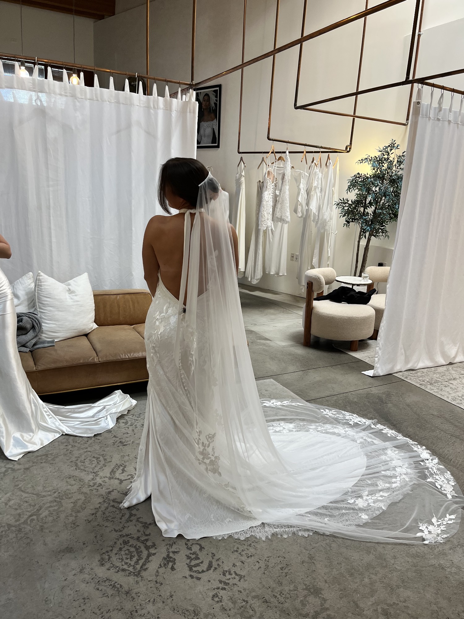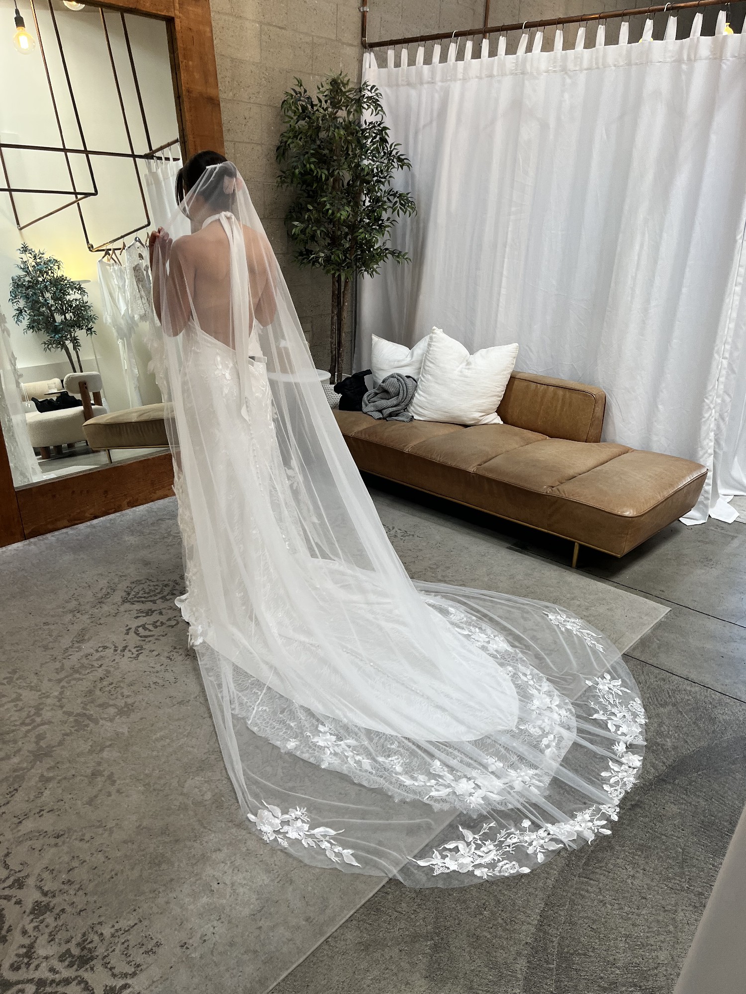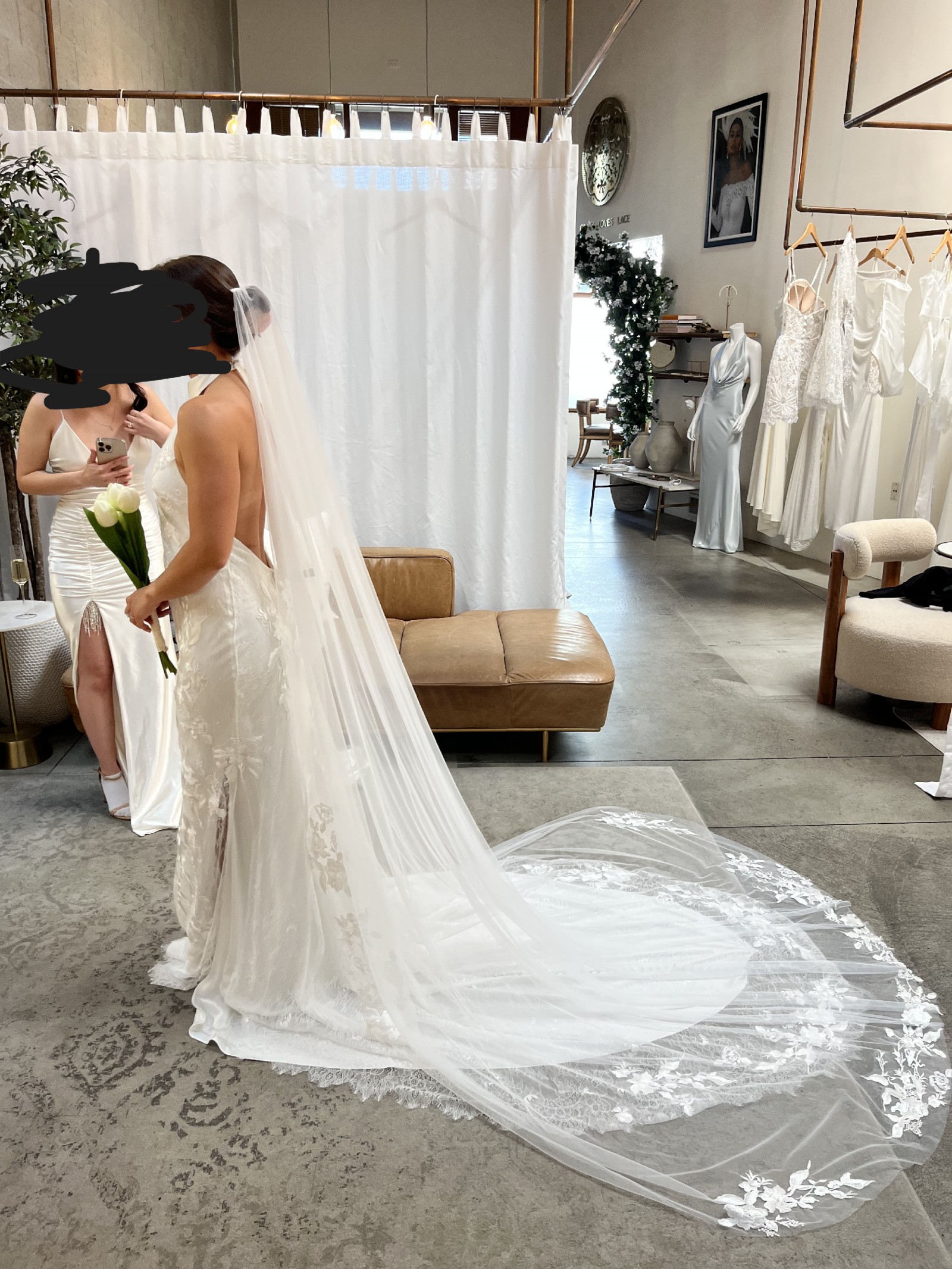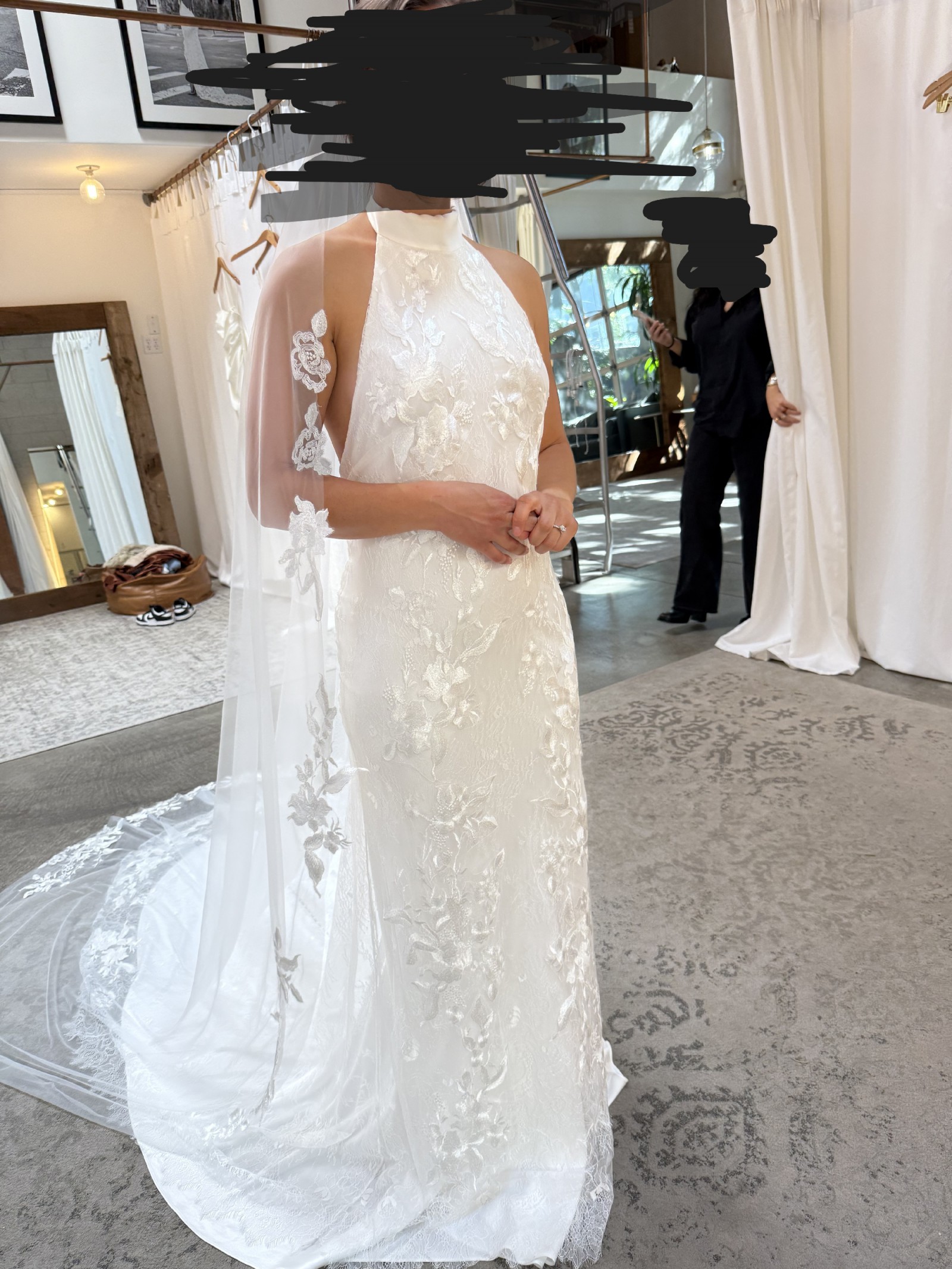 I bought this dress early on in my wedding gown journey; it's beautiful and I love it but I just had a change of heart. It's a size small (the GLL sizes range from XS-XXXL) completely brand new still in the box with the garment bag and hanger; no alterations have been made! The photos of me in the dress are me trying them on in the show room. I also bought the Stevie veil which I'll include with the dress! The dress retails for $3,200 now and the veil retails for $500, plus tax will take you well over $4,000! This dress will look beautiful on any bride and I'm really excited to bring it to another bride for a discounted price.