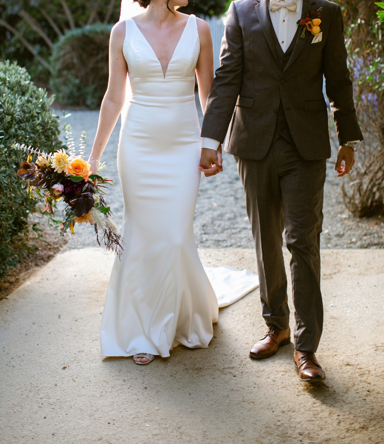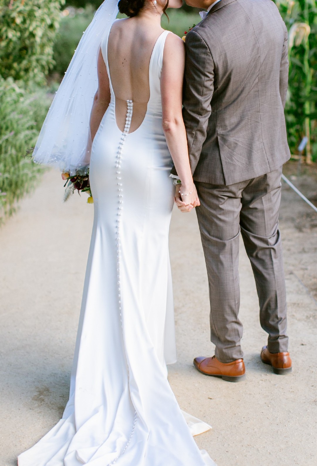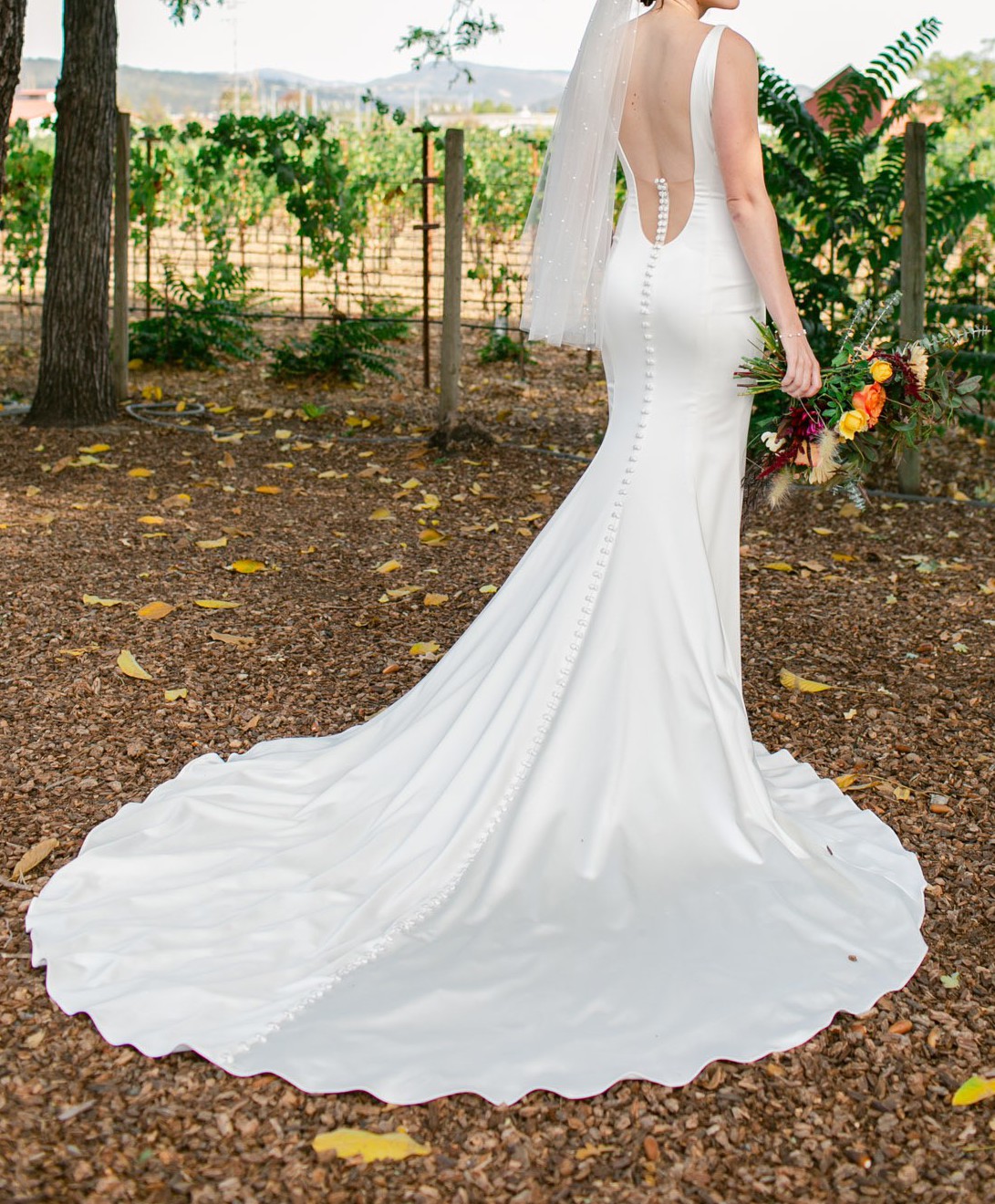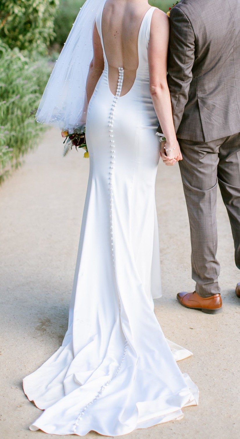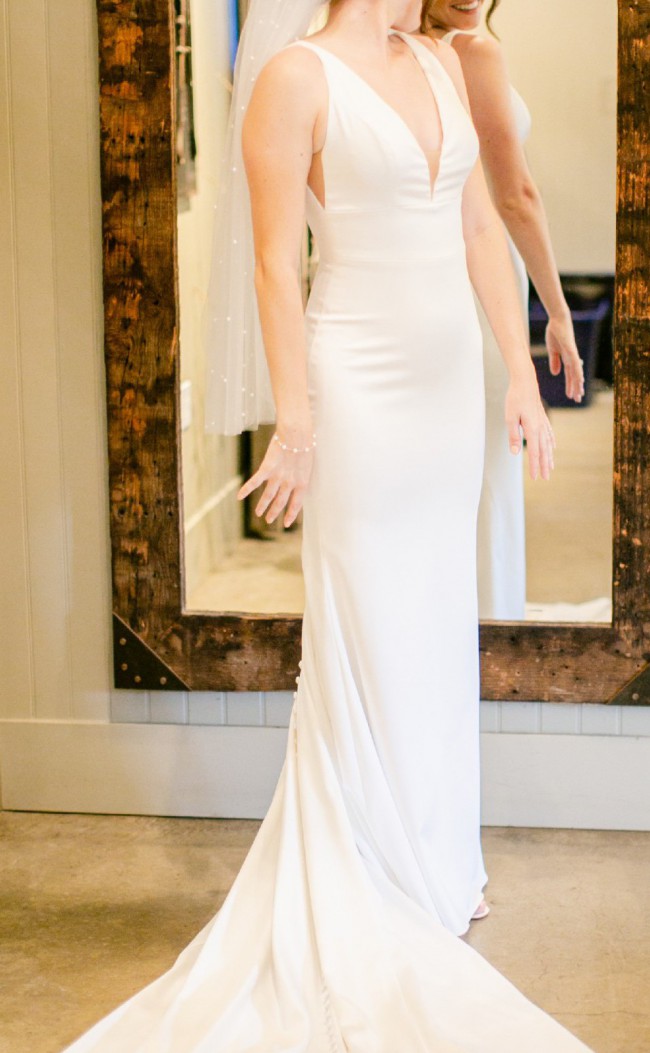 Beautiful Maggie Sottero gown purchased from Miosa Bridal in 2021. Comfortable, photographs well, and very flattering. It was dropped off at the dry cleaners the day after my wedding and is in great condition and in a storage/preservation box since then. A minor tiny grey stain is on the back near the buttons that I found when inspecting it