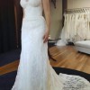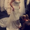 The Annika gown by Karen Willis Holmes is an elegant lace wedding dress featuring a timeless fit-and-flare silhouette and a structured bustier bodice. Part of the designer’s Bespoke Collection, this gown is crafted in a rich ivory tone with exquisite corded lace detailing.