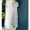 Our very fine quality silk lamé is delicate and should be worn with care. The silk threads achieve beautiful dimension, depth of colour and texture, resulting in lamé that is easily snagged. Slight pulls are the character of the fabrication and not considered flaws. We recommend that after each wear any loose threads should be carefully trimmed.